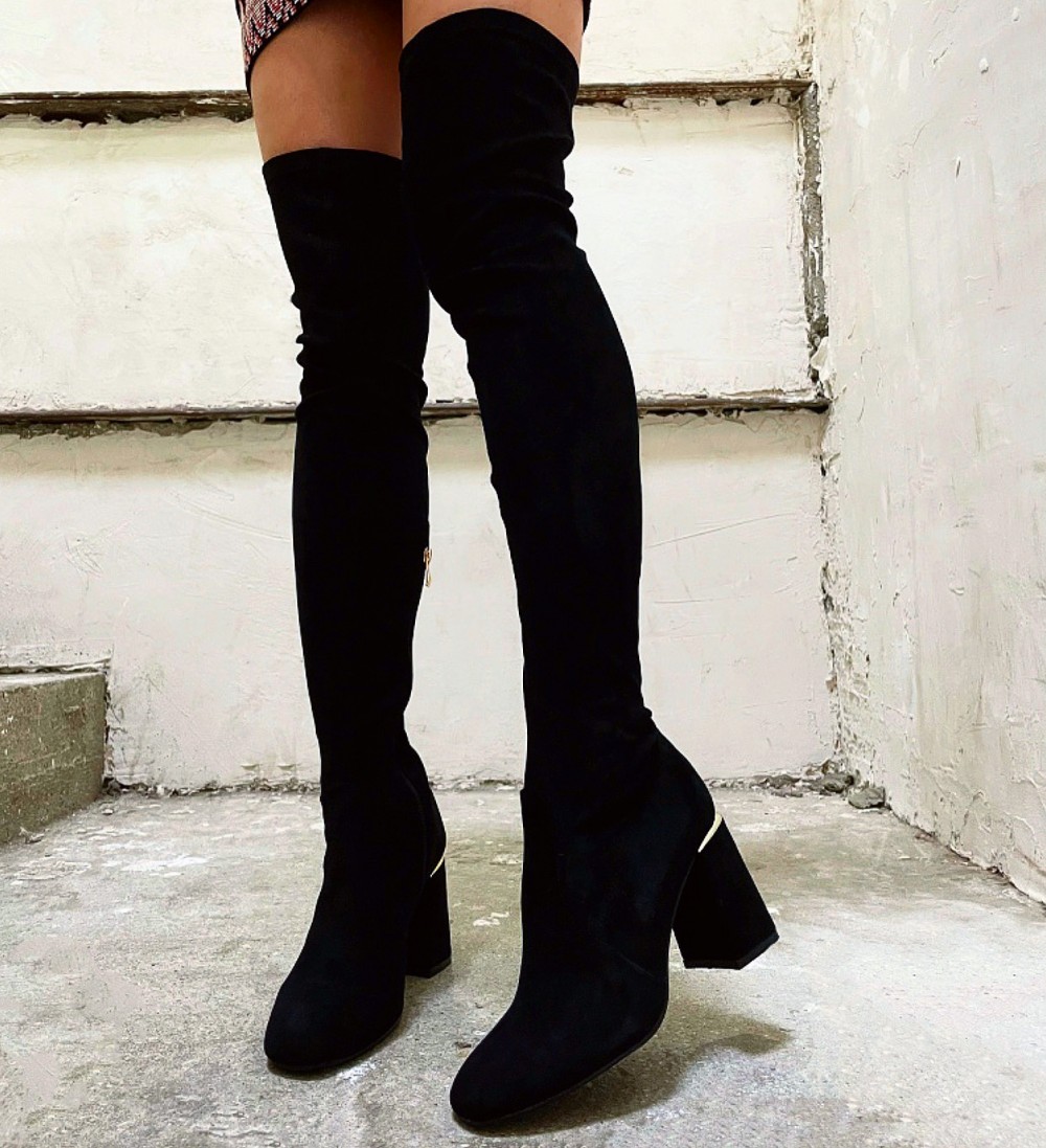 Plokk-kontsaga ülepõlve saapad (Must, 38)