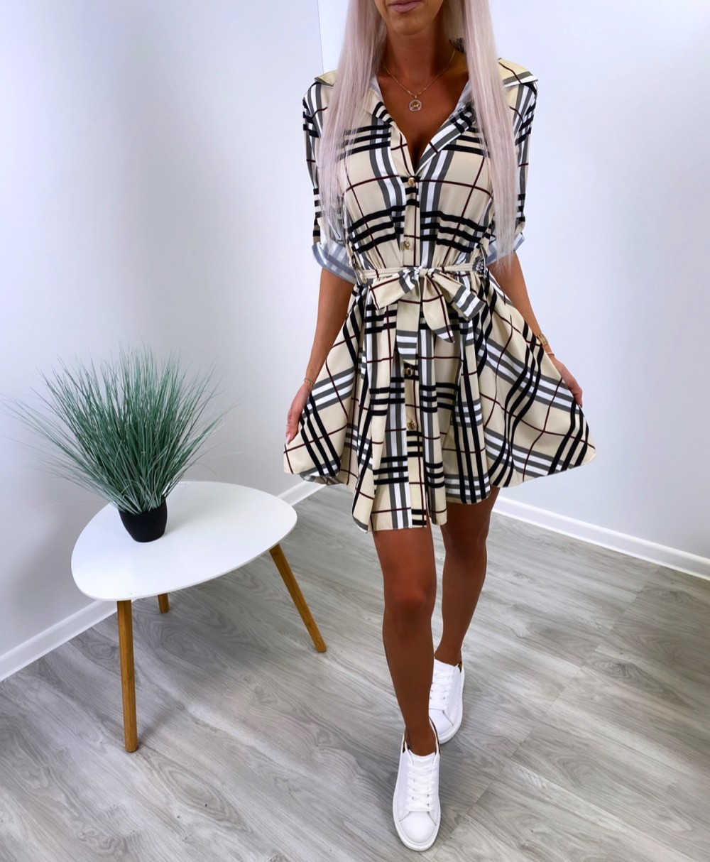 Ruuduline keskelt seotav kleit (Üks suurus, Lilla)