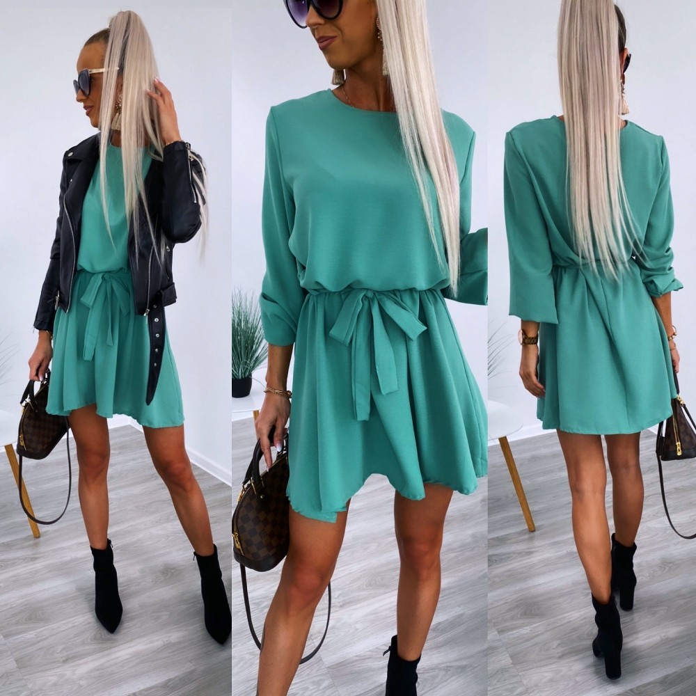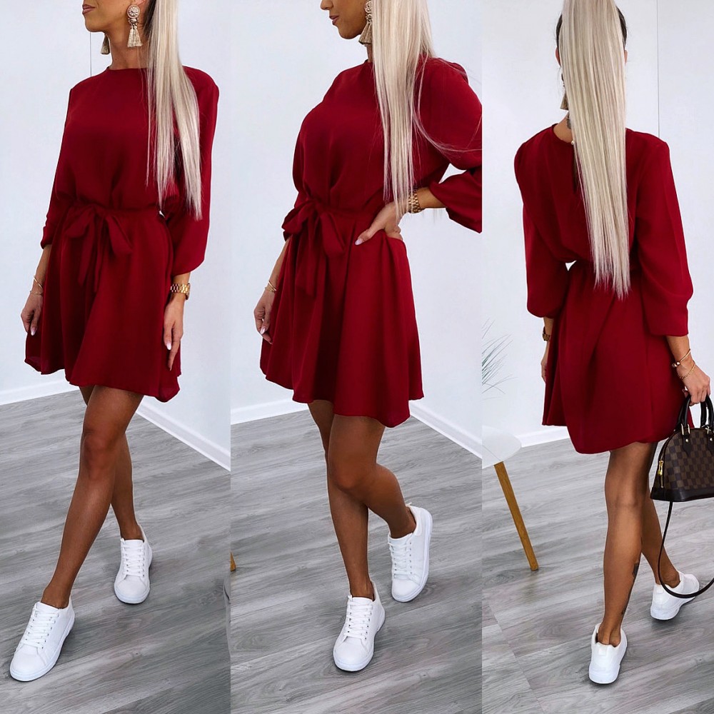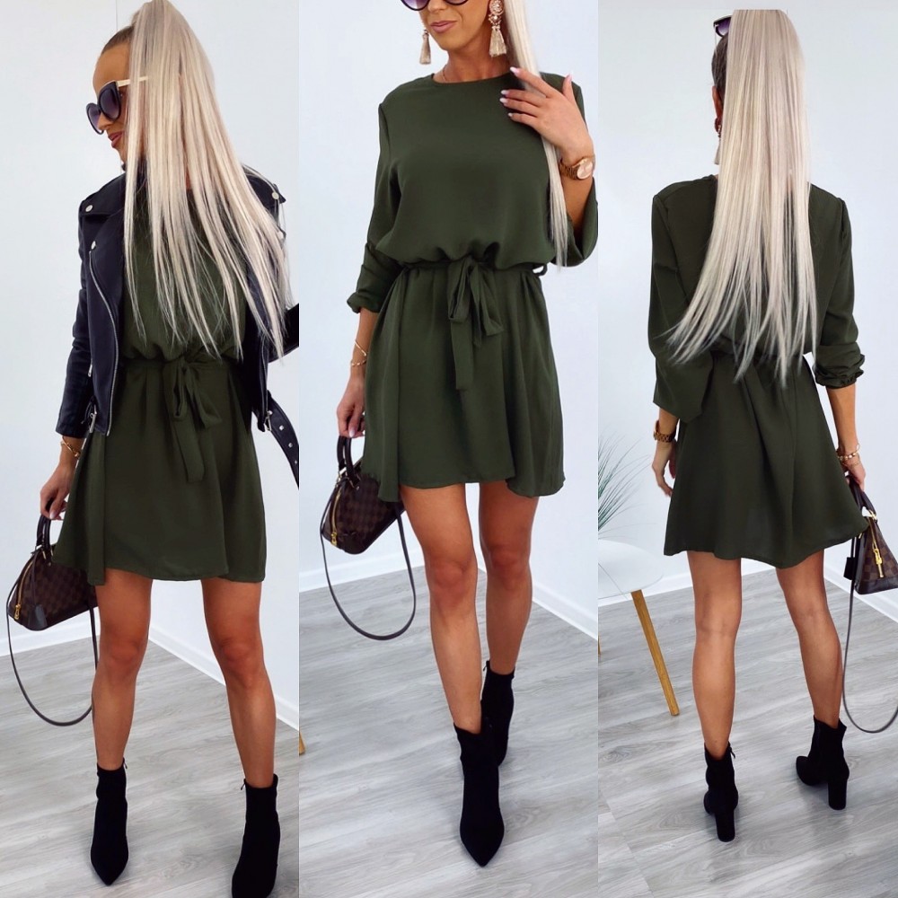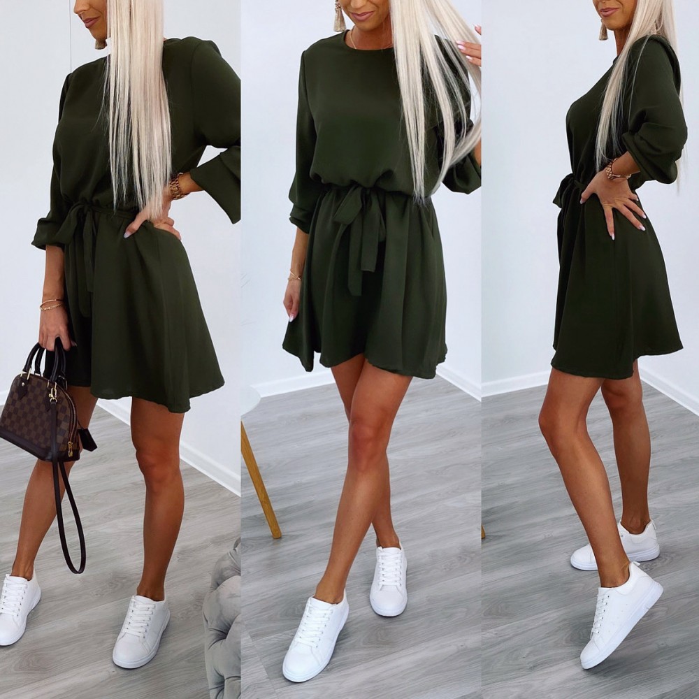 Keskelt seotav mugav vabaaja kleit (Üks suurus, Khaki)