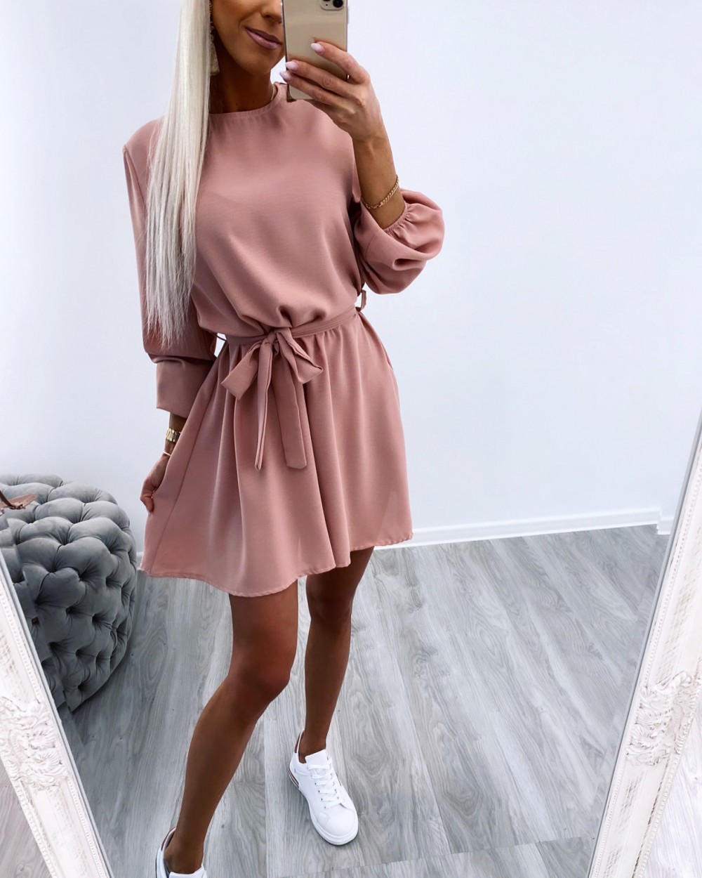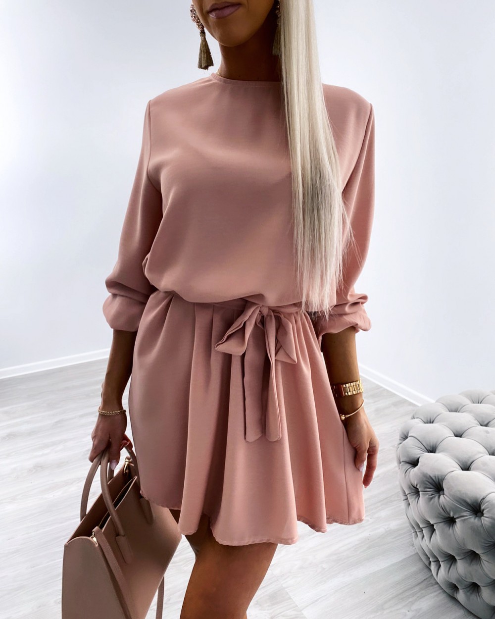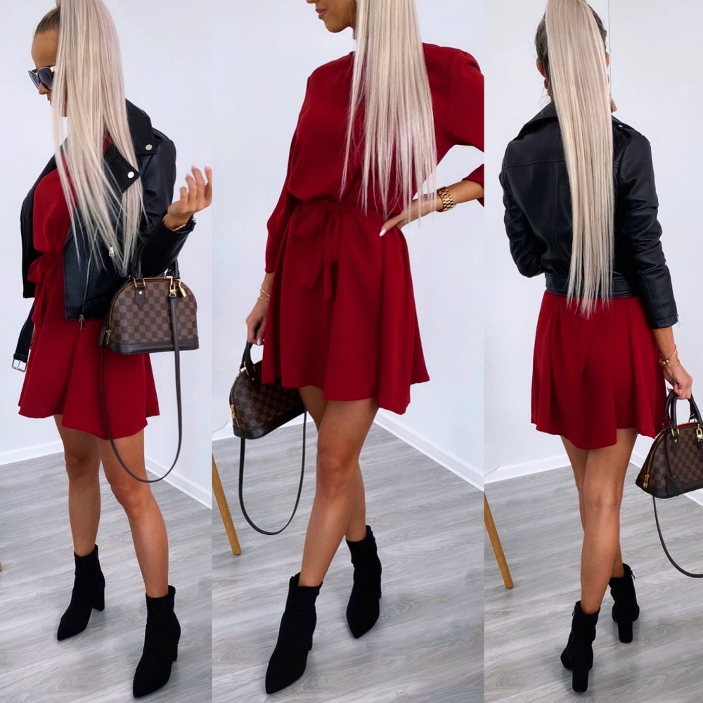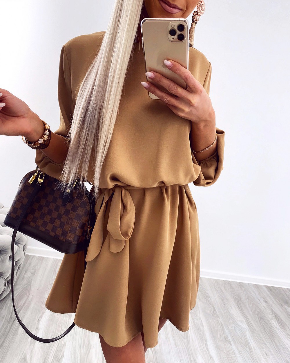 Keskelt seotav mugav vabaaja kleit (Üks suurus, Khaki)