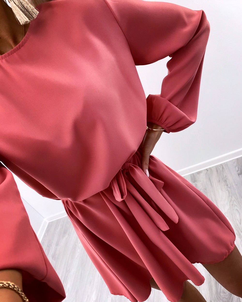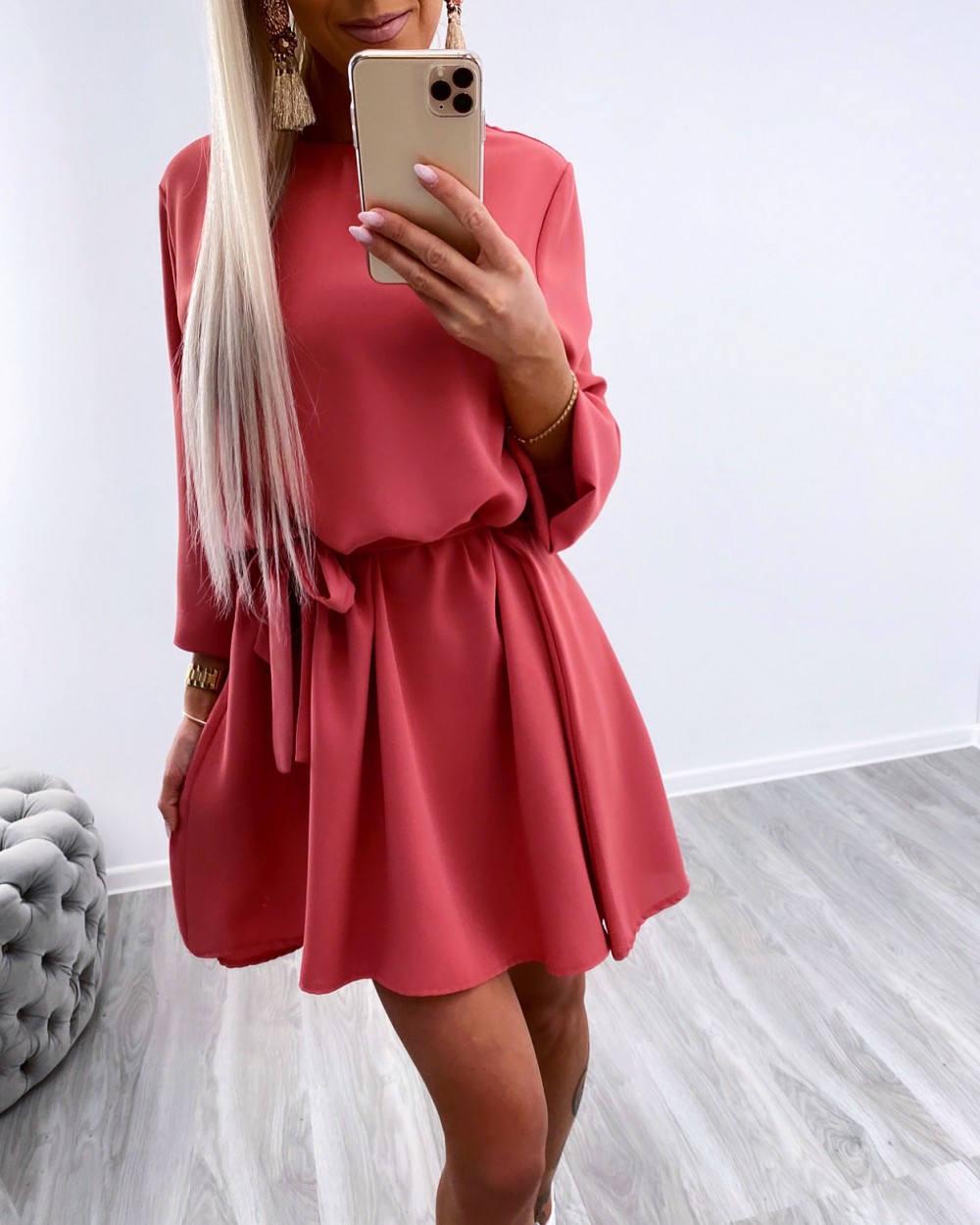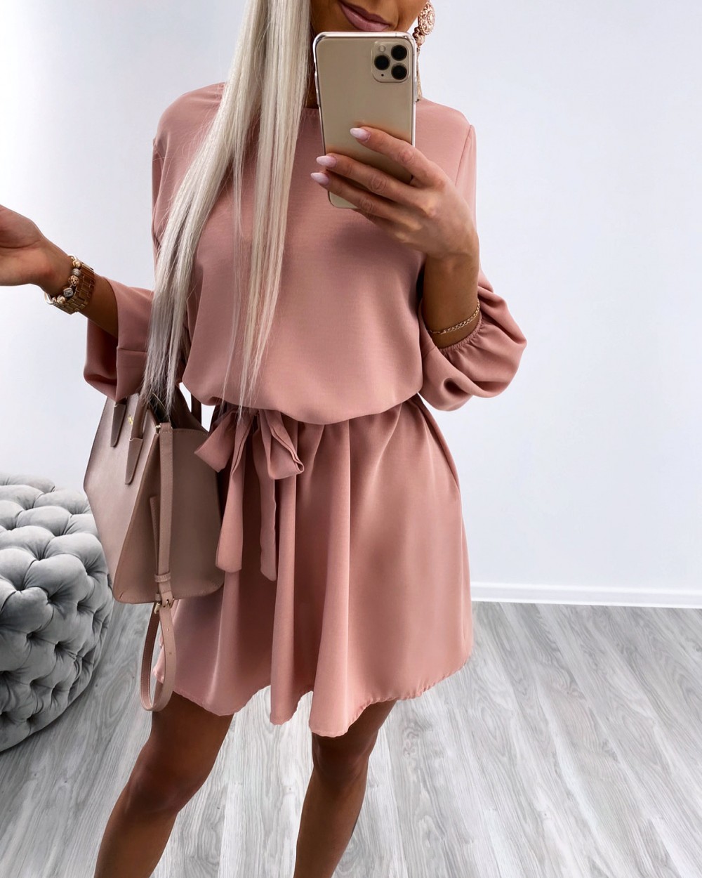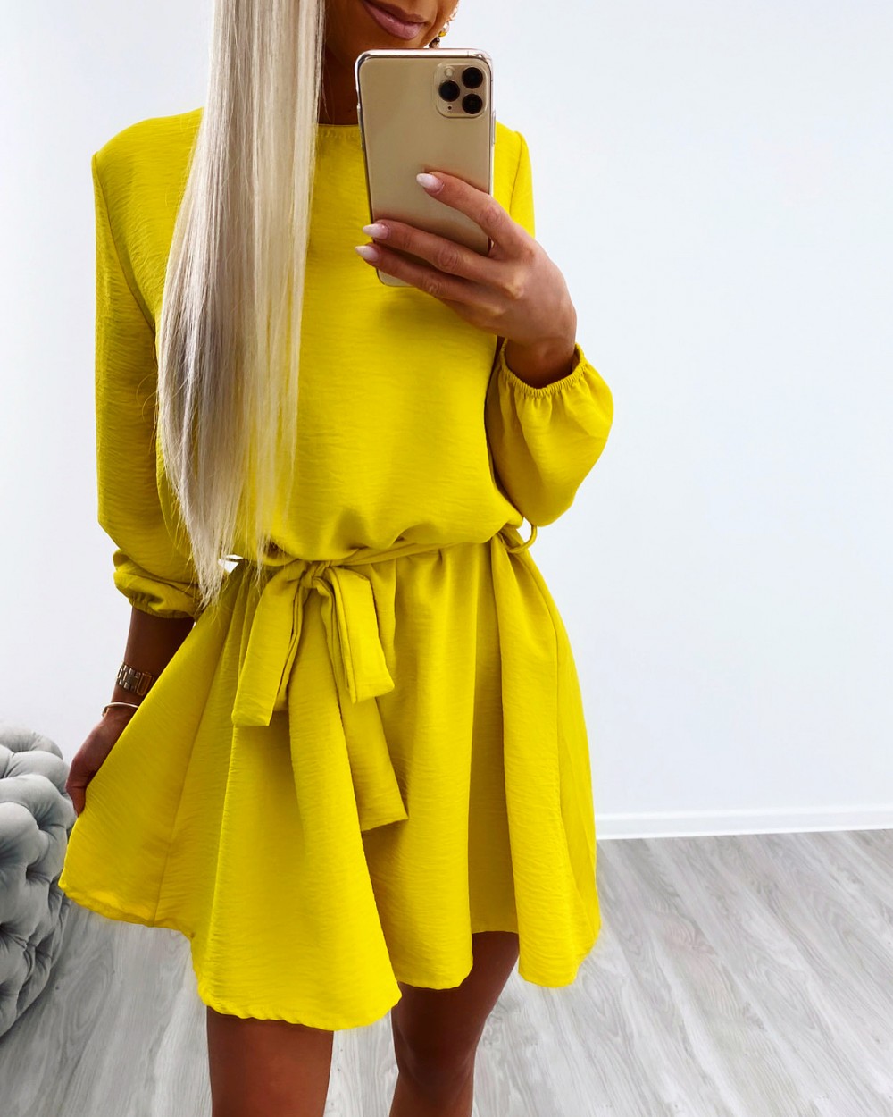 Keskelt seotav mugav vabaaja kleit (Üks suurus, Khaki)