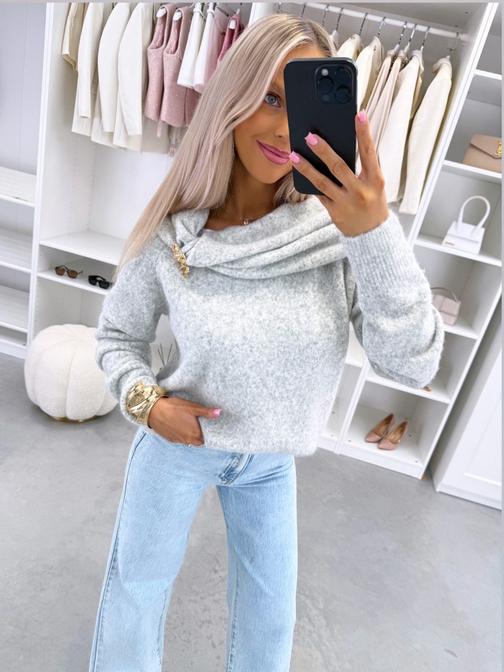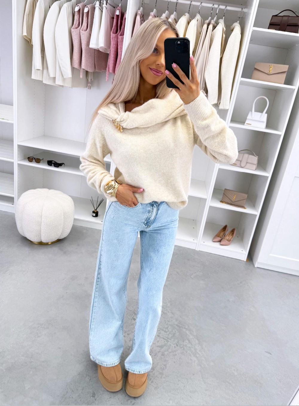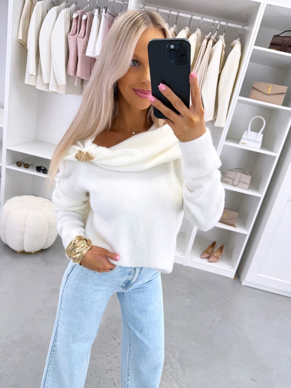 Kuldse detailiga pehme kampsun (Üks suurus, Valge)