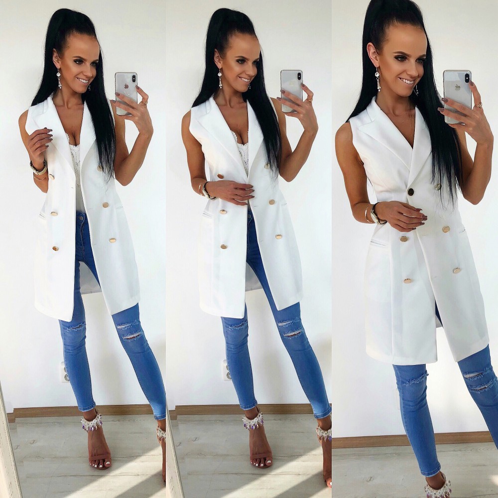 Kuldsete nööpidega vest-jakk (Valge, S/M)