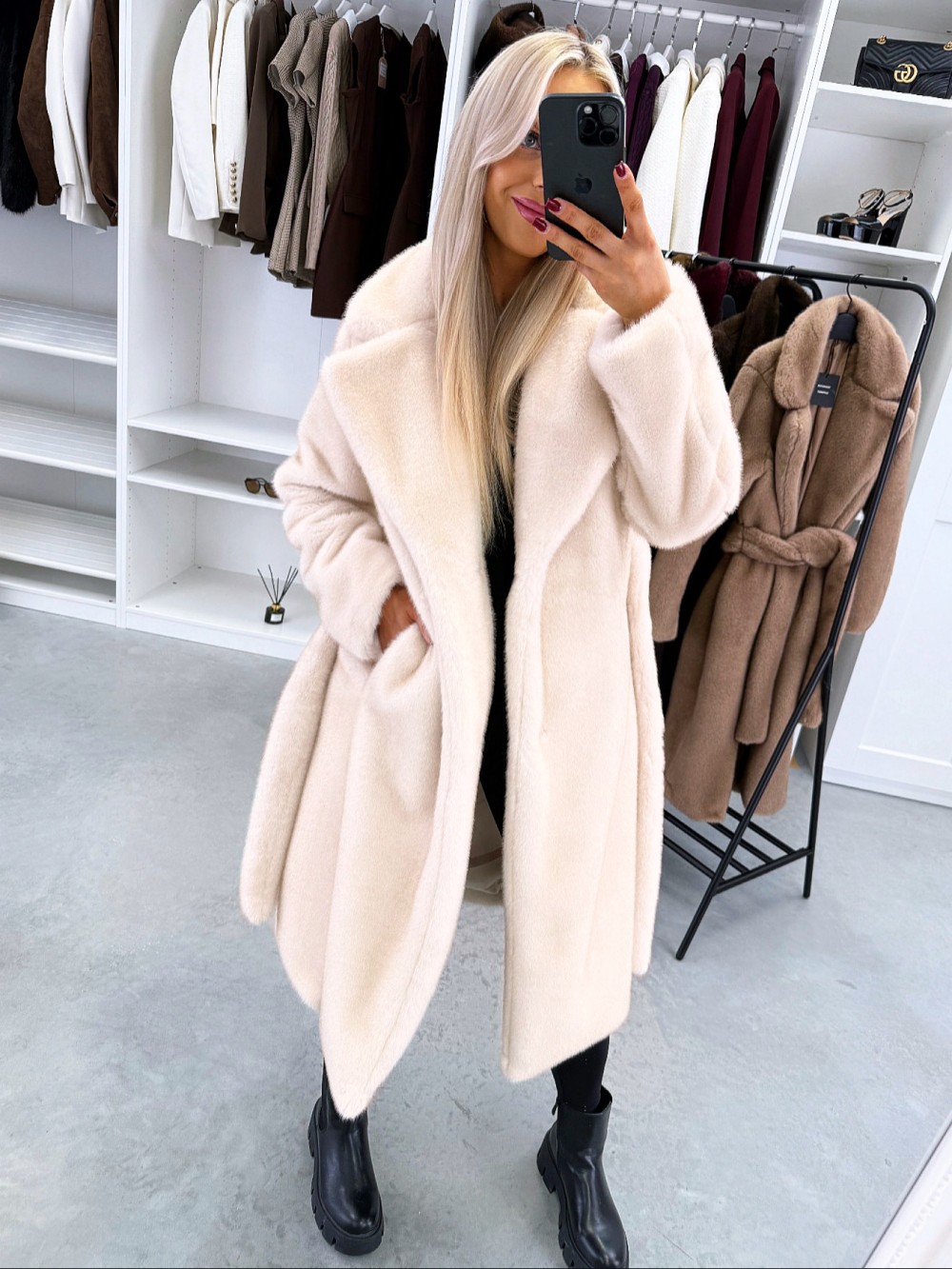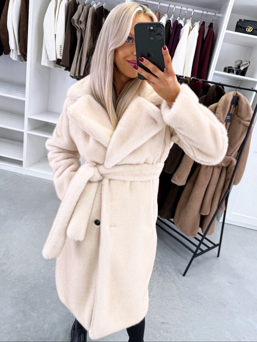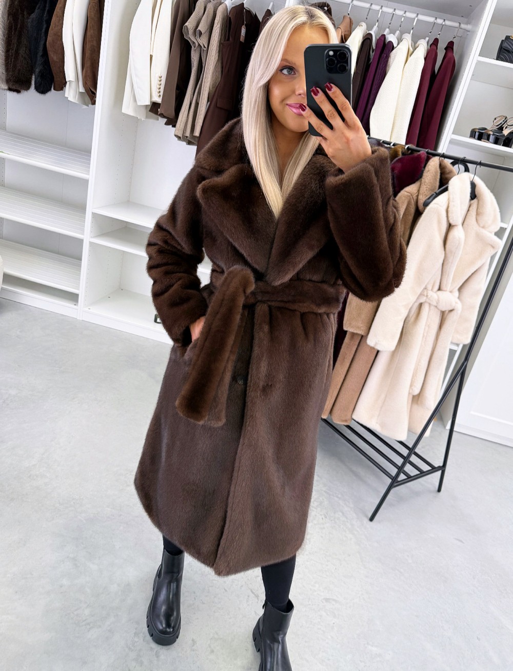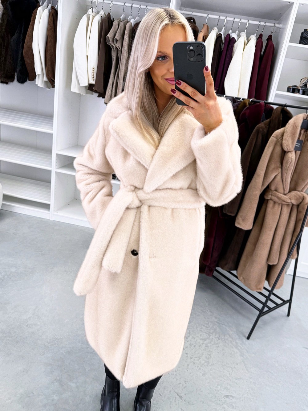 Prabangus žieminis paltas su surišimu priekyje (Ruda, S/M)