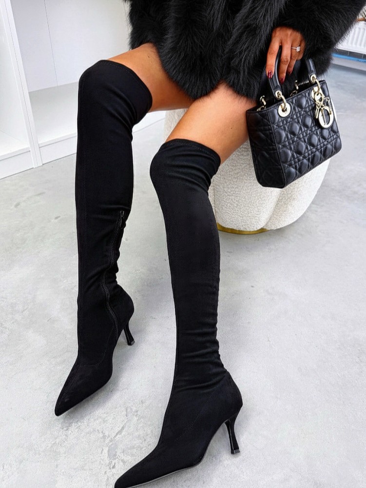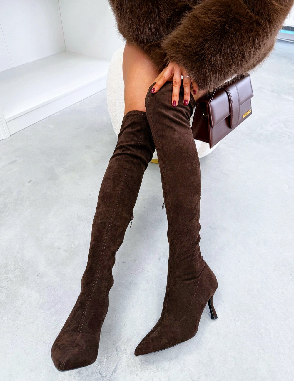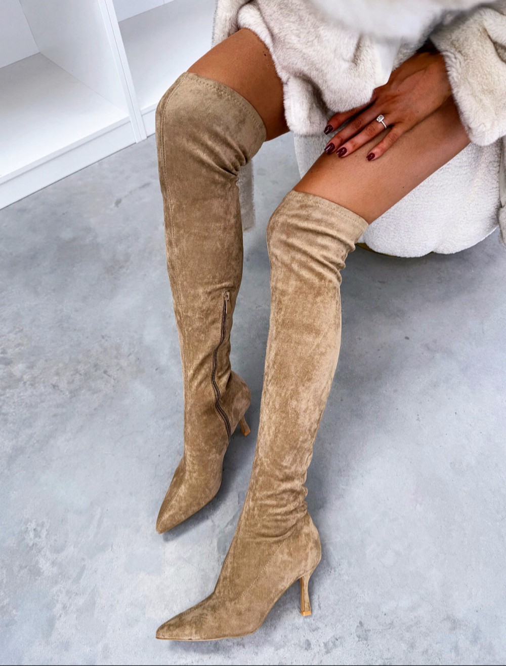 Zamšādas augstpapēžu zābaki virs ceļgala (Bēša, 38)