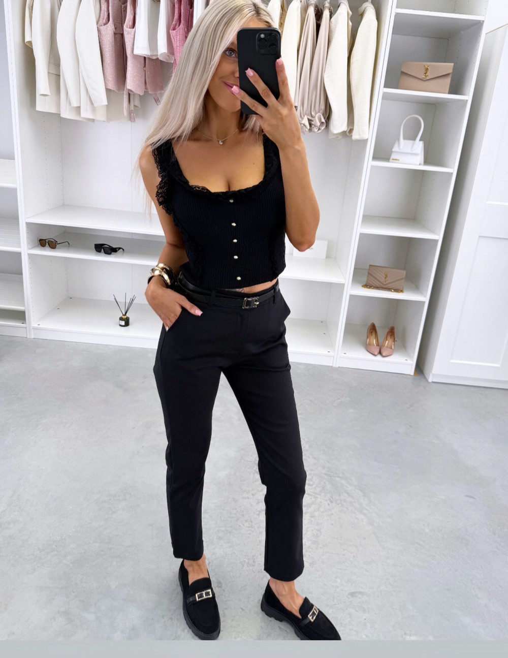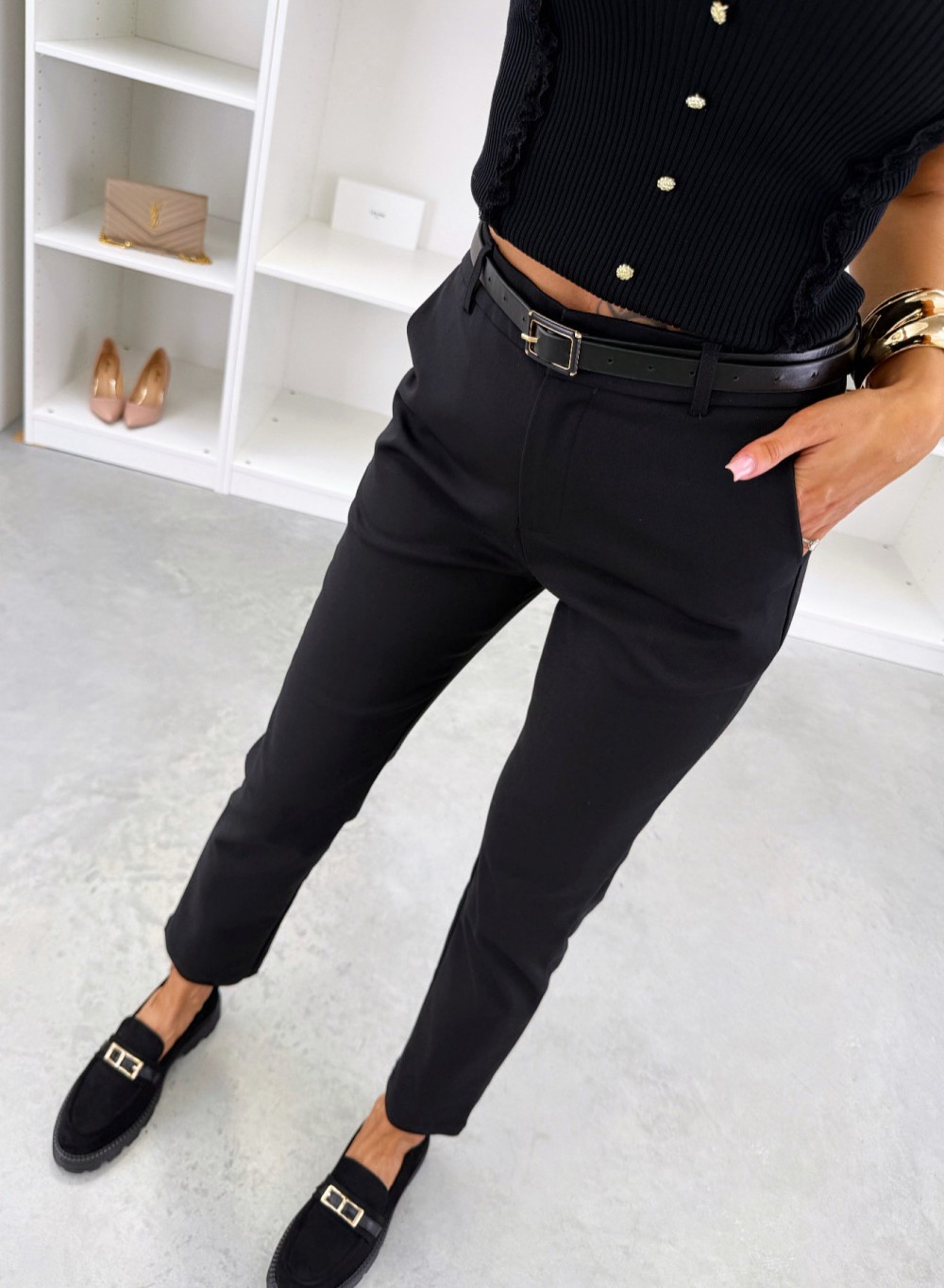 Brīva piegriezuma bikses ar jostu (Melns, S/M)