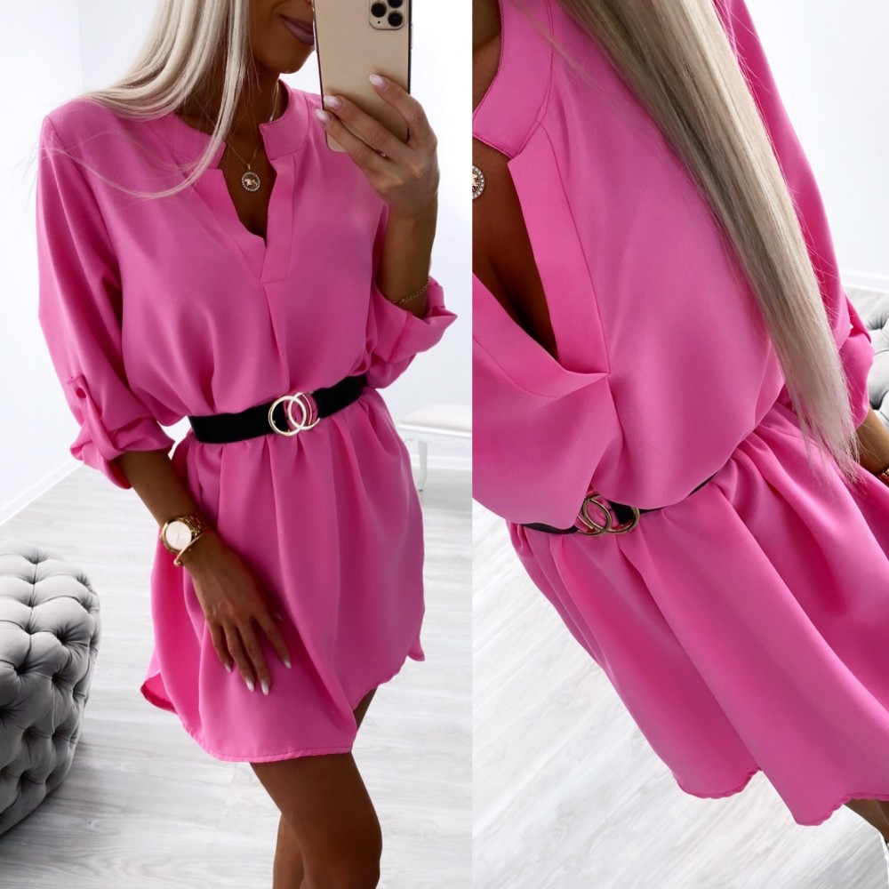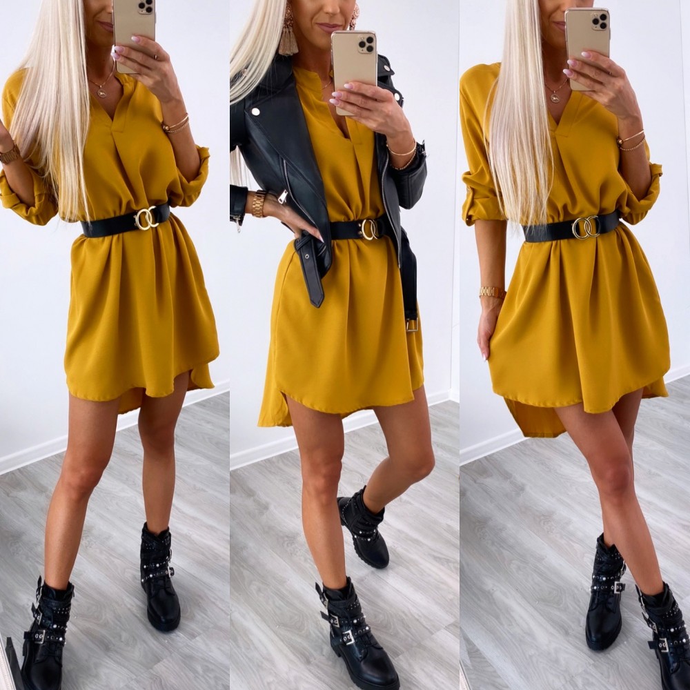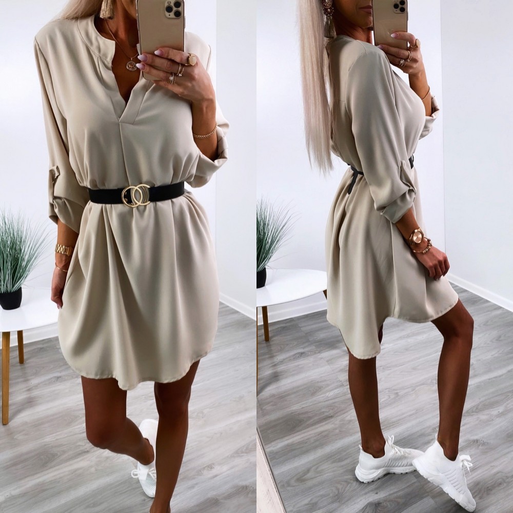 Viens izmērs visiem - der XS-M izmēriem. Modele ir 170 cm gara. Josta ir iekļauta.Krāsa
