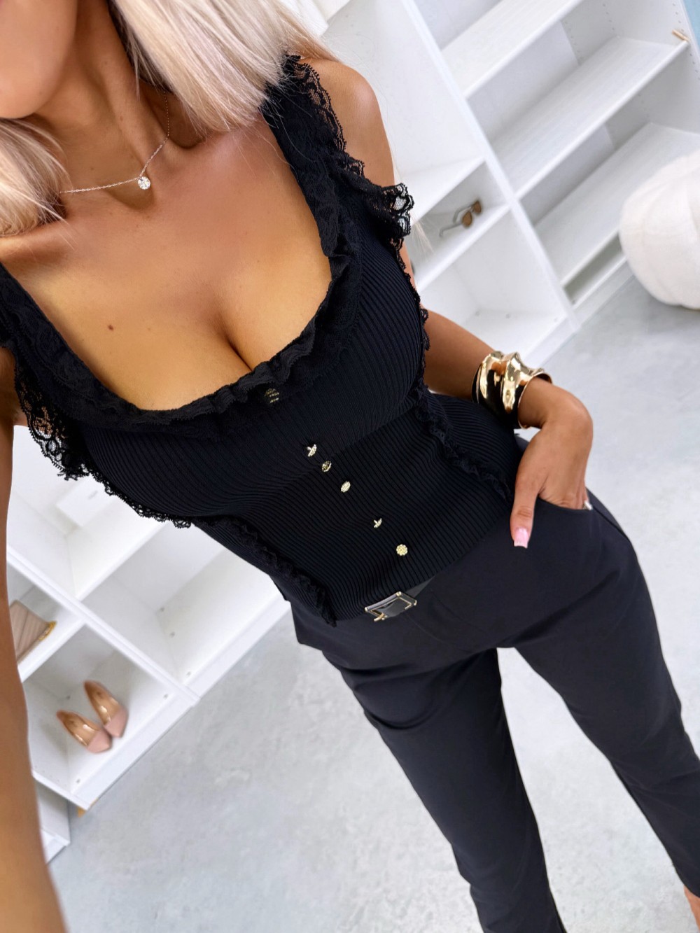 Elastīgs tops ar mežģīņu apdari (Viens izmērs, Dzeltens)