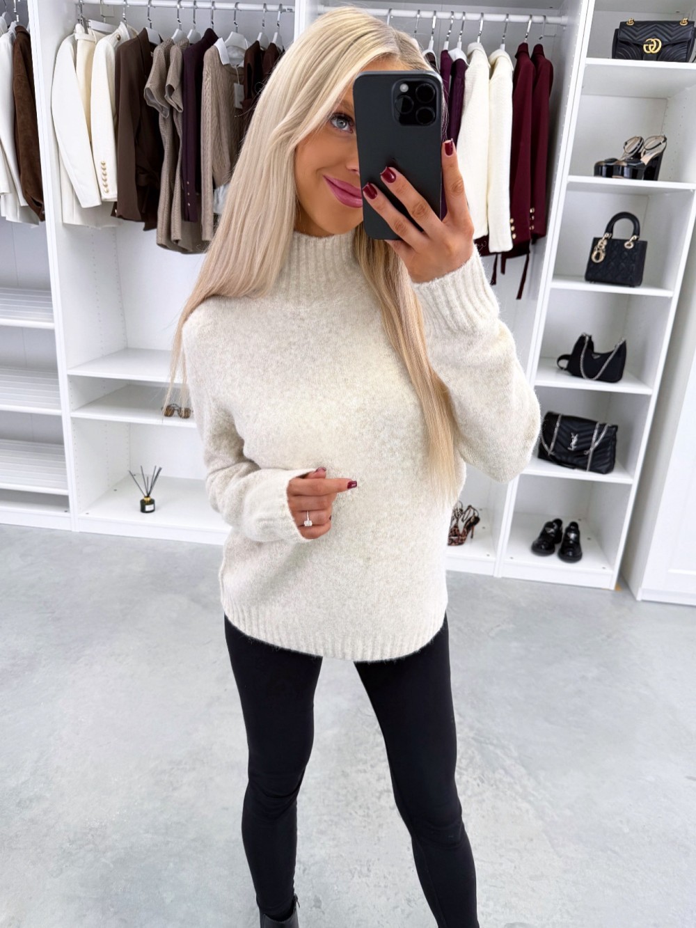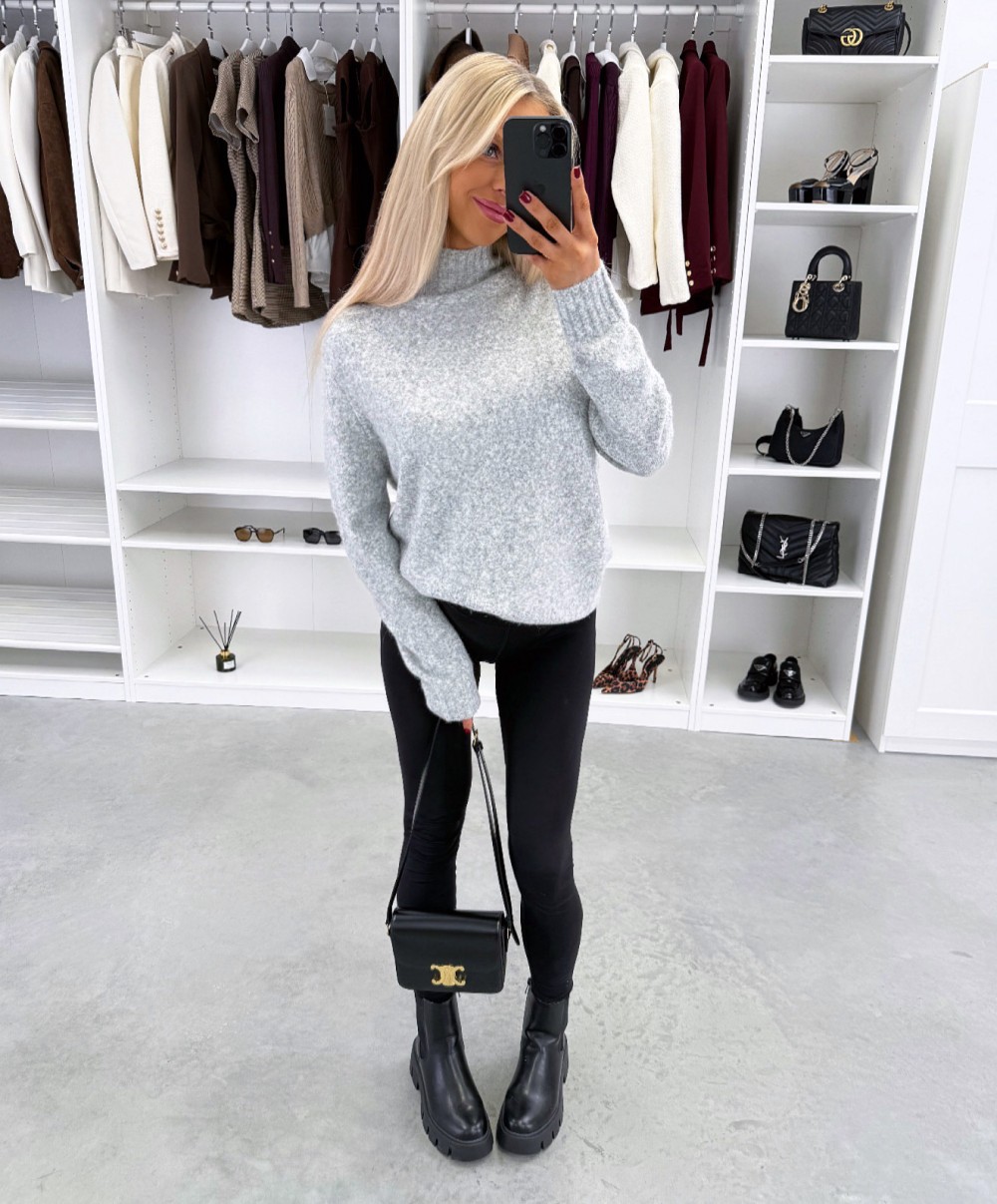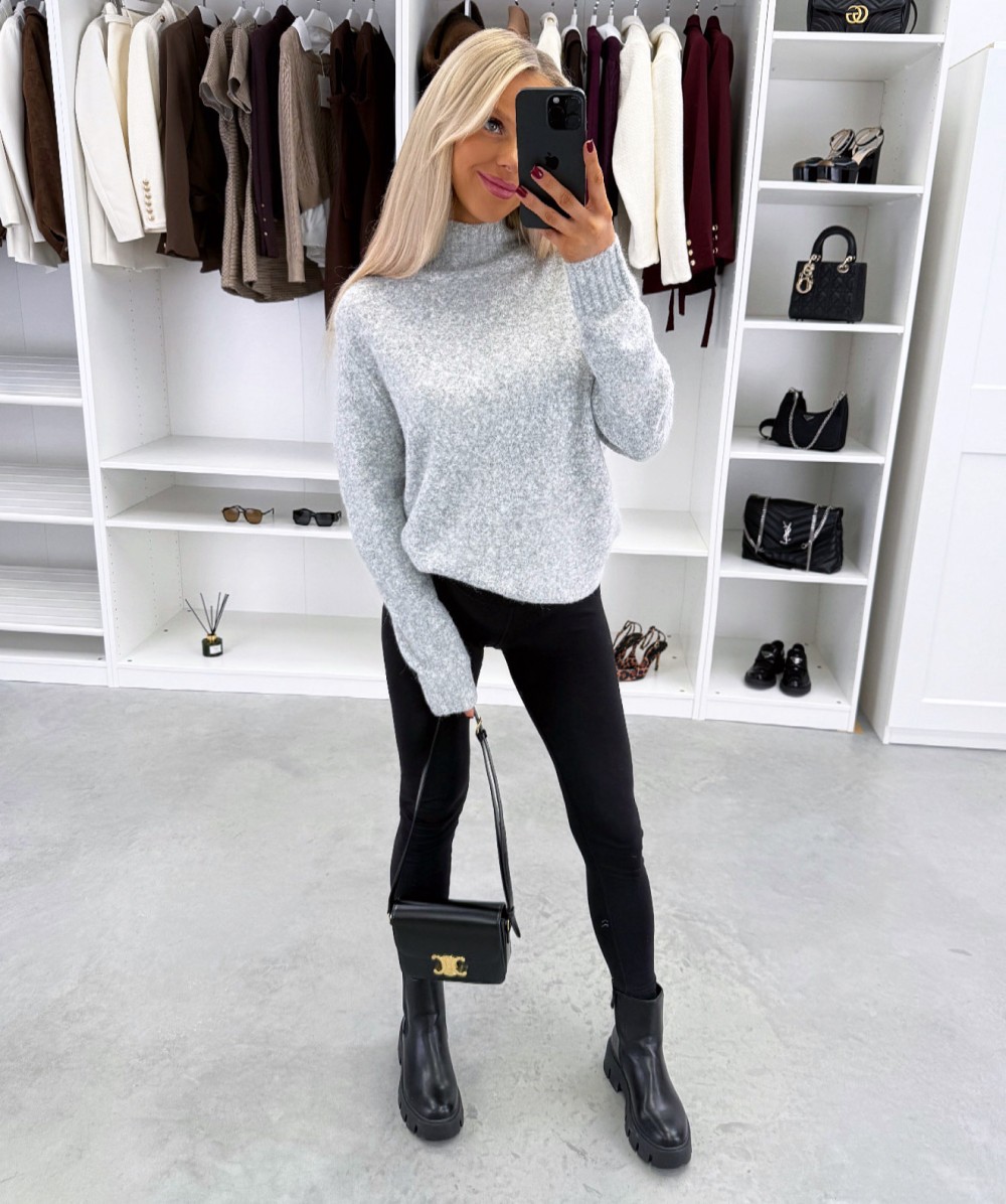 Maigs adījuma džemperis ar augstu apkakli (Viens izmērs, Gaiši bēša)