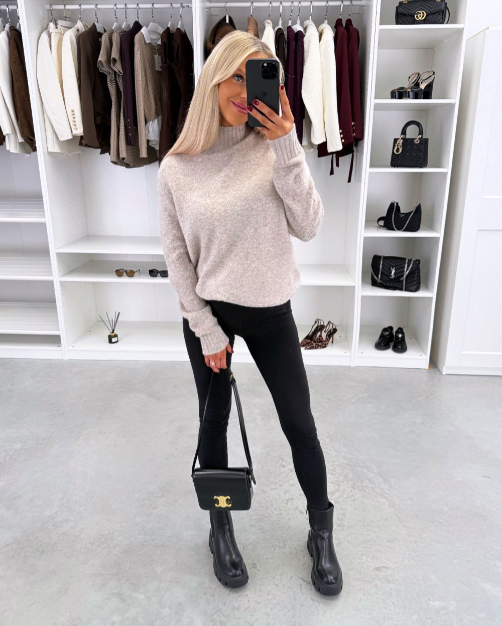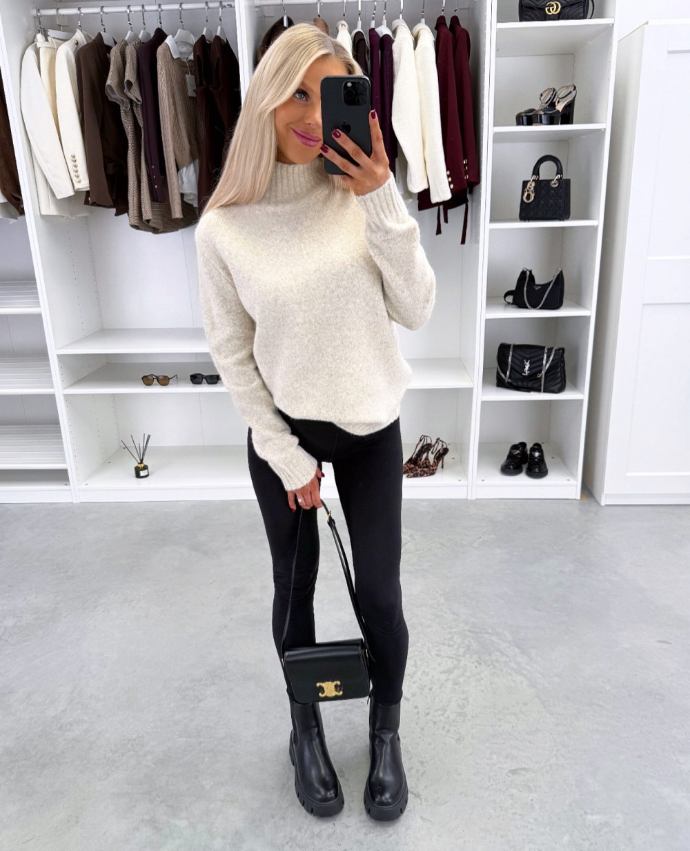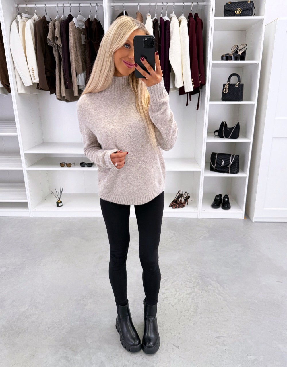 Maigs adījuma džemperis ar augstu apkakli (Viens izmērs, Gaiši bēša)