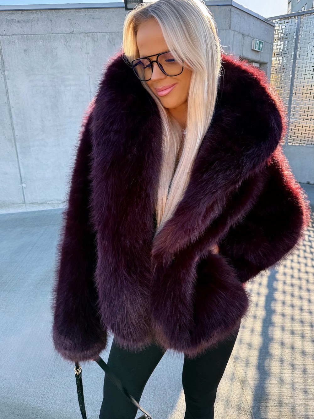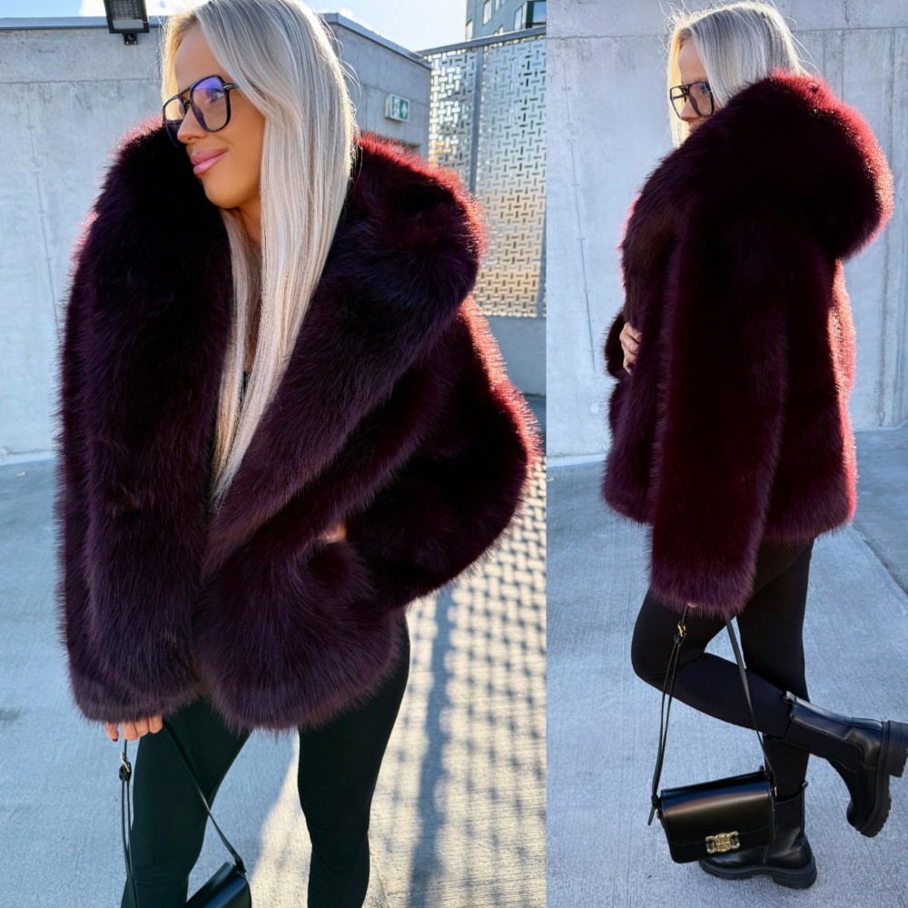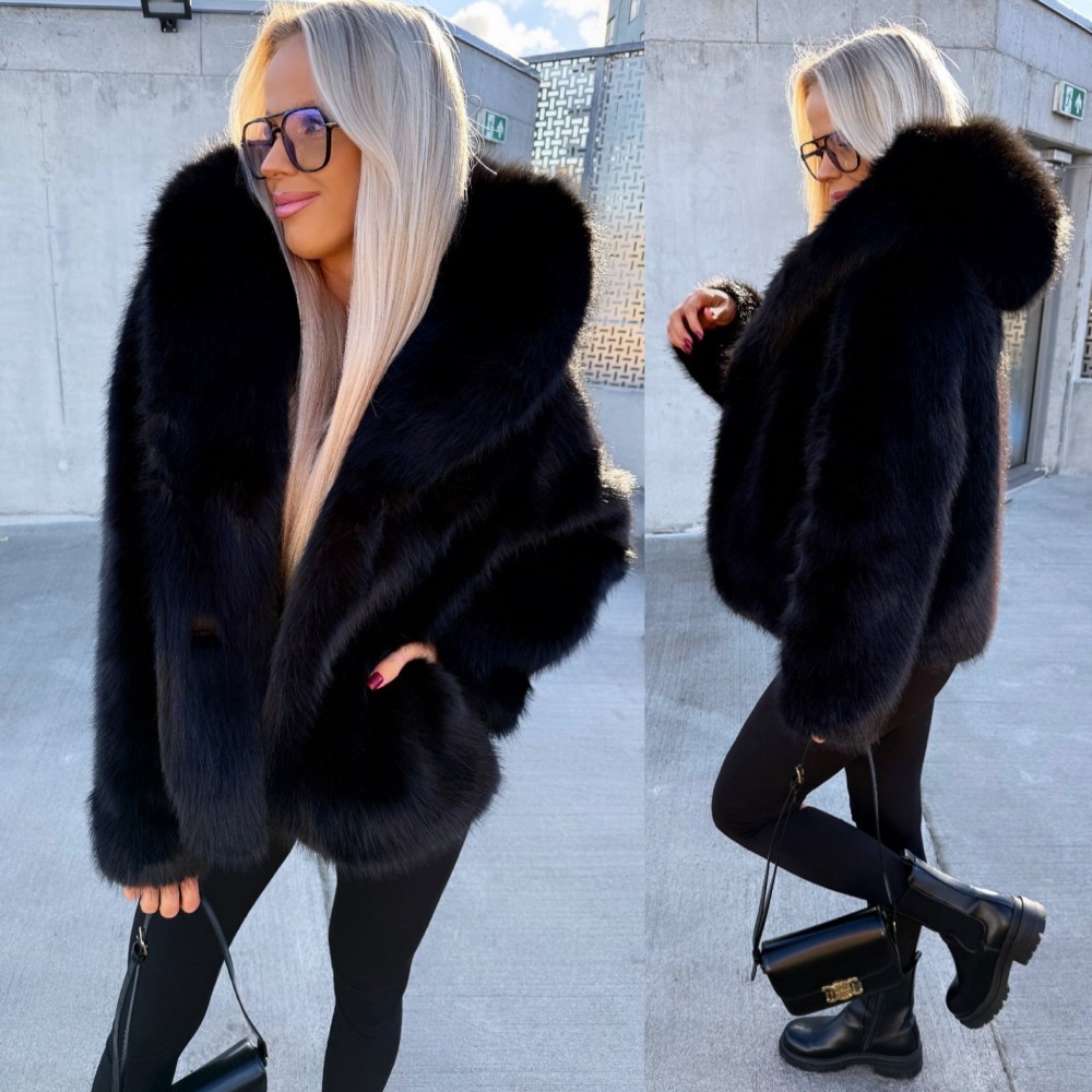 Grezns mākslīgās kažokādas mētelis ar kapuci (Viens izmērs, Melns)