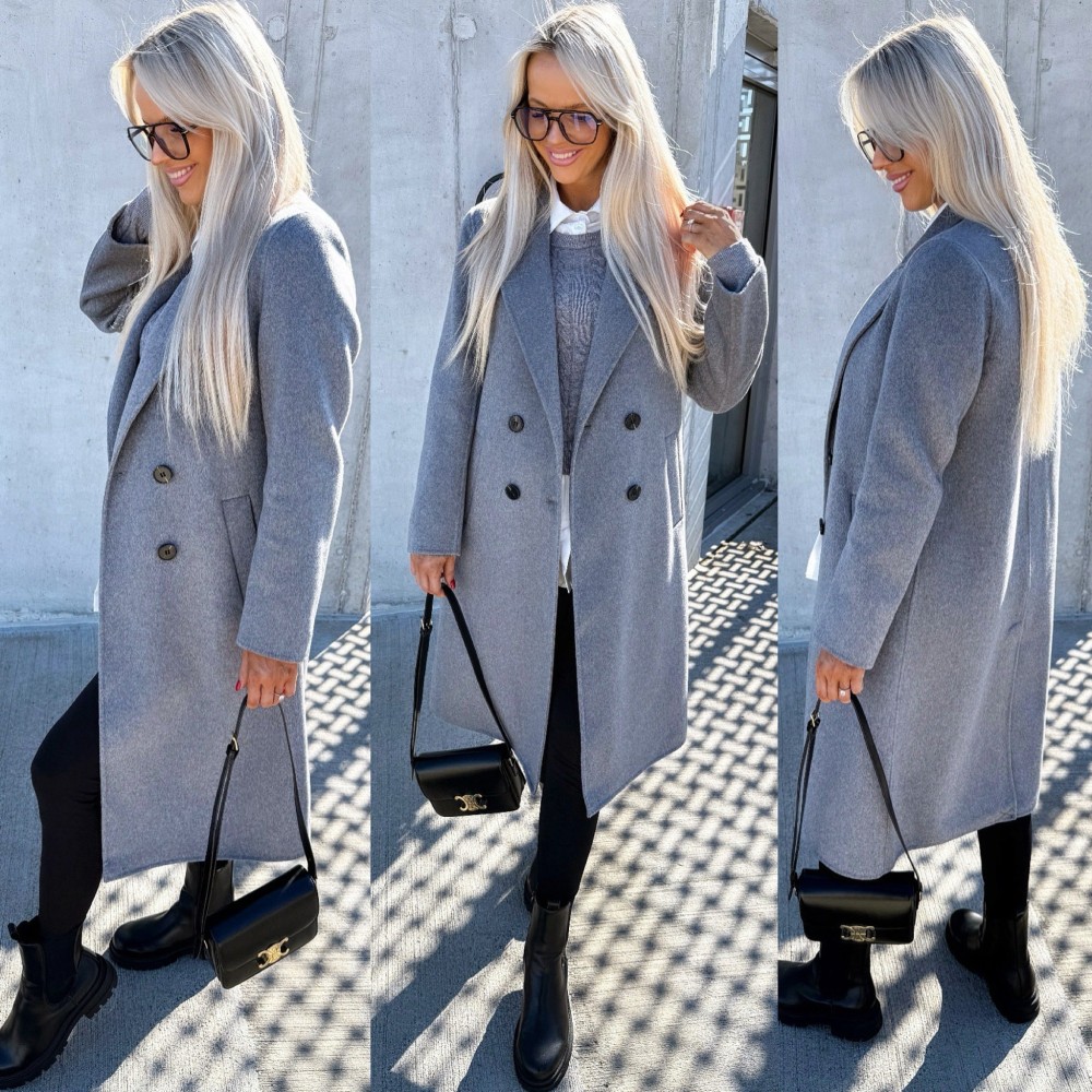 Vilnas mētelis ar pogām (Pelēks, M/L)