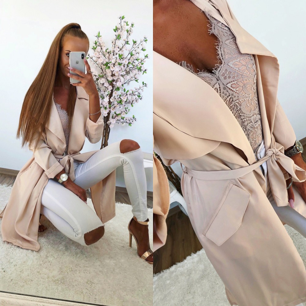 Zīdaina jaka ar jostu (M, Bēša)