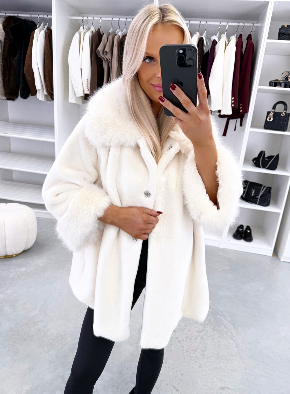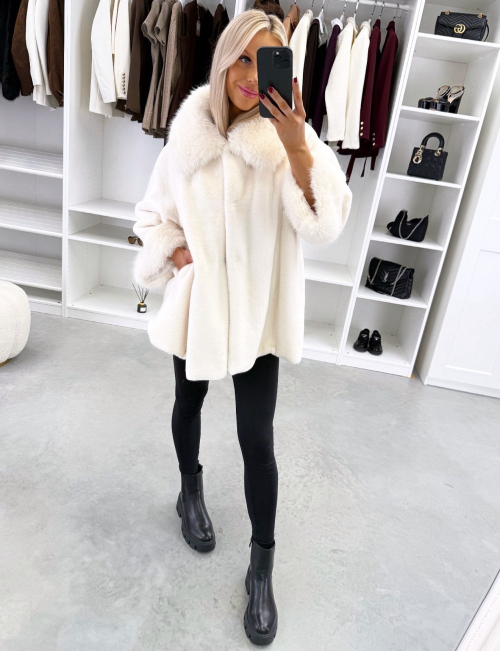 Miękka kurtka-płaszcz ze sztucznego futra (Jeden rozmiar, Jasny beż)