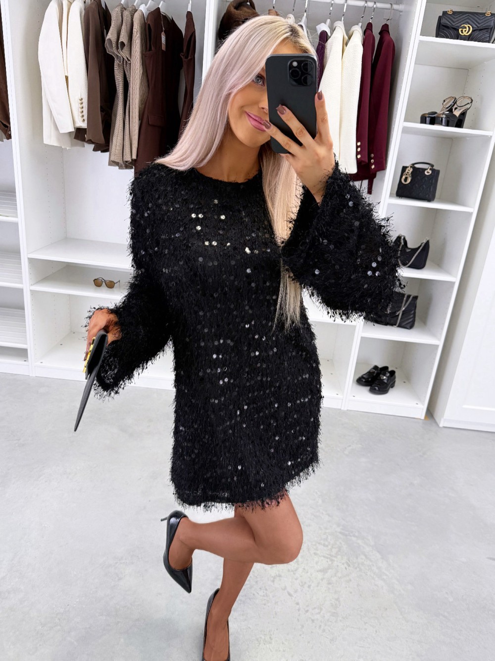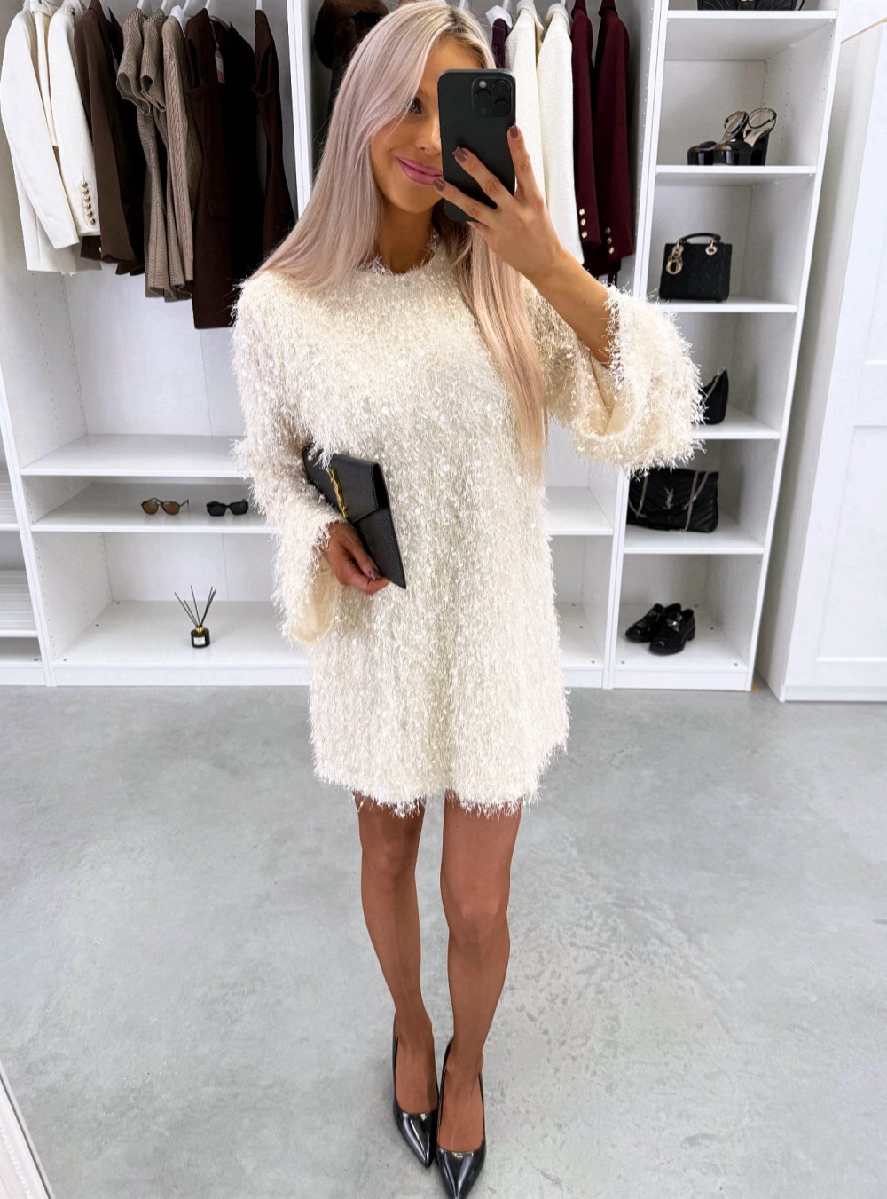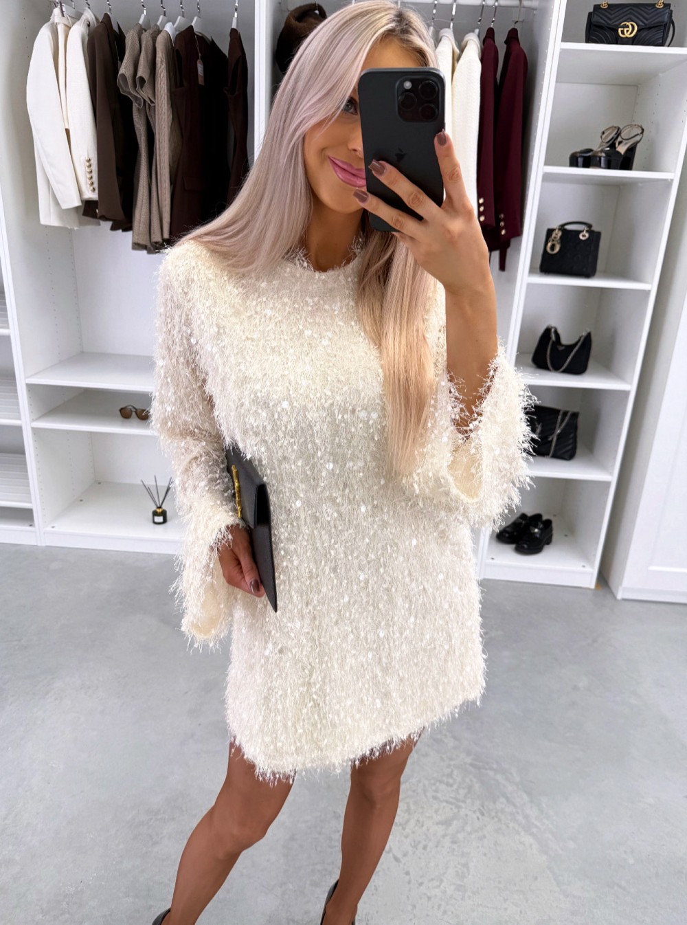 Miękka, lejąca sukienka z cekinami (M, Jasny beż)