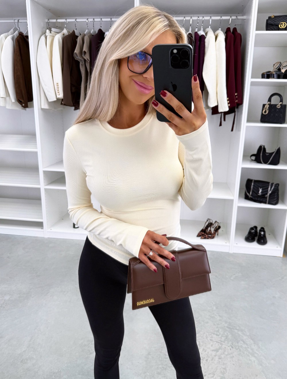 Обтягивающий топ с длинными рукавами (XS/S, Светло-бежевый)