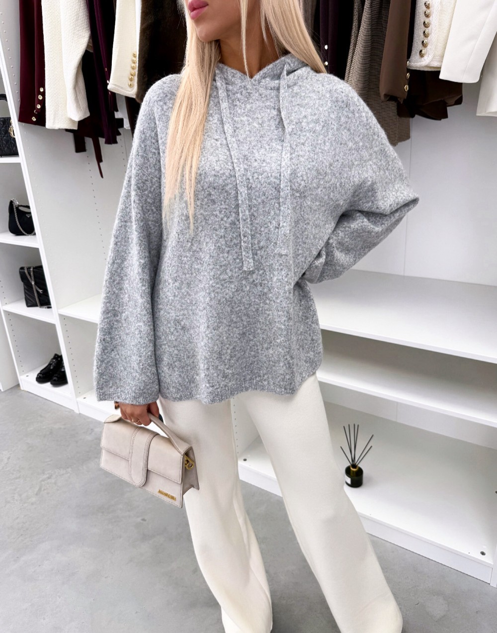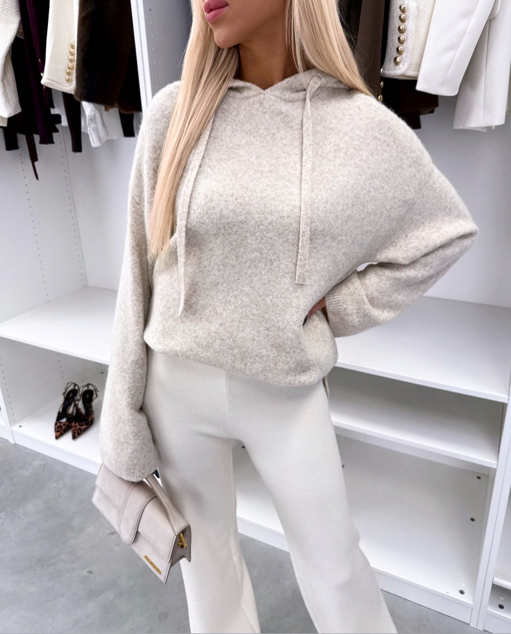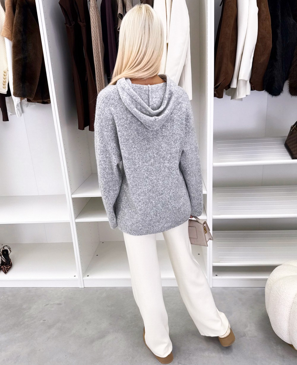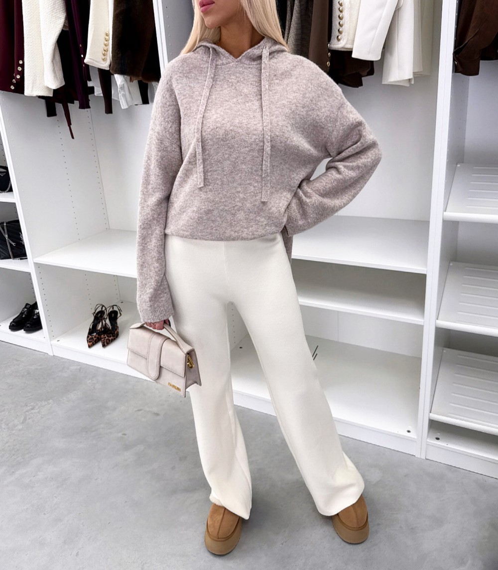 Мягкий свитер в стиле худи (Один размер, Светло-бежевый)