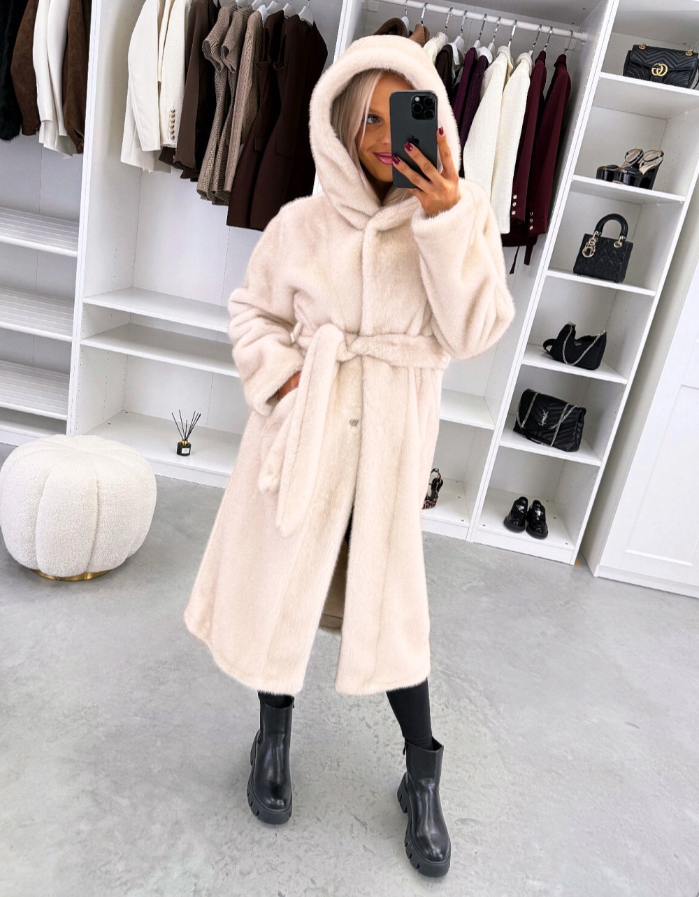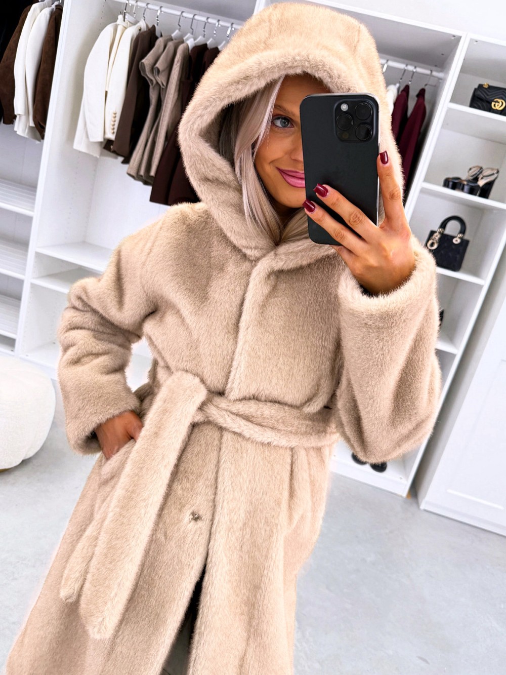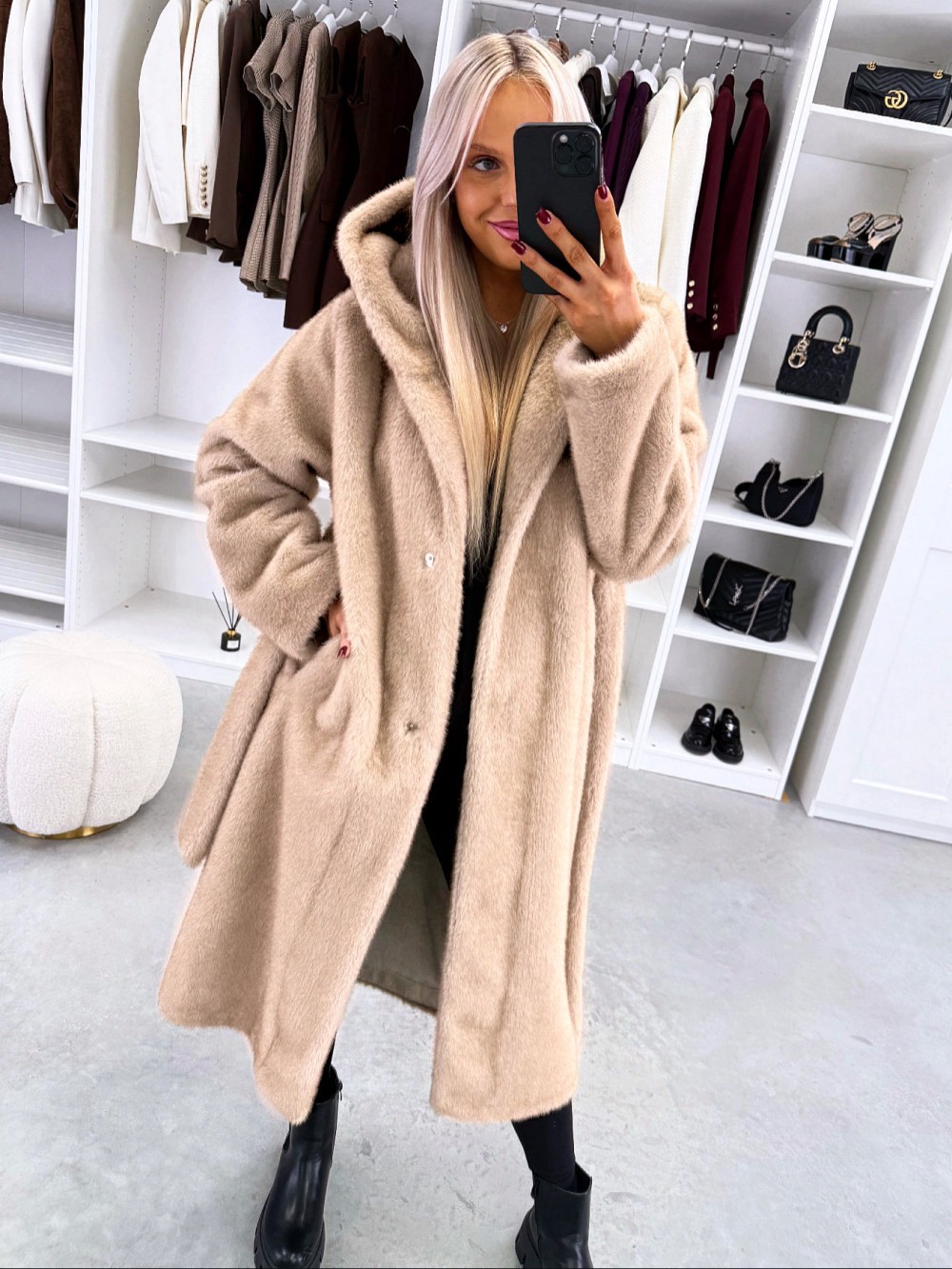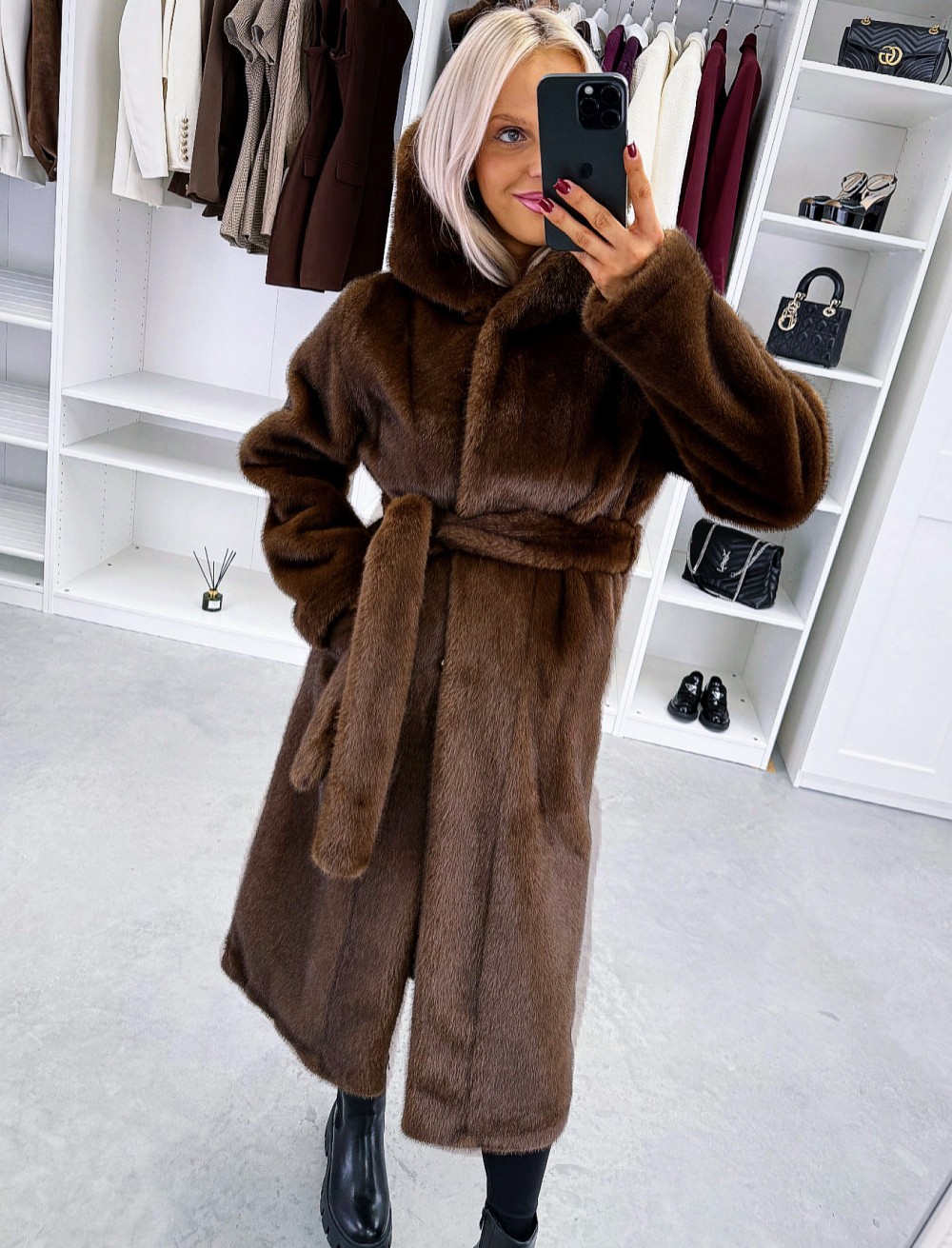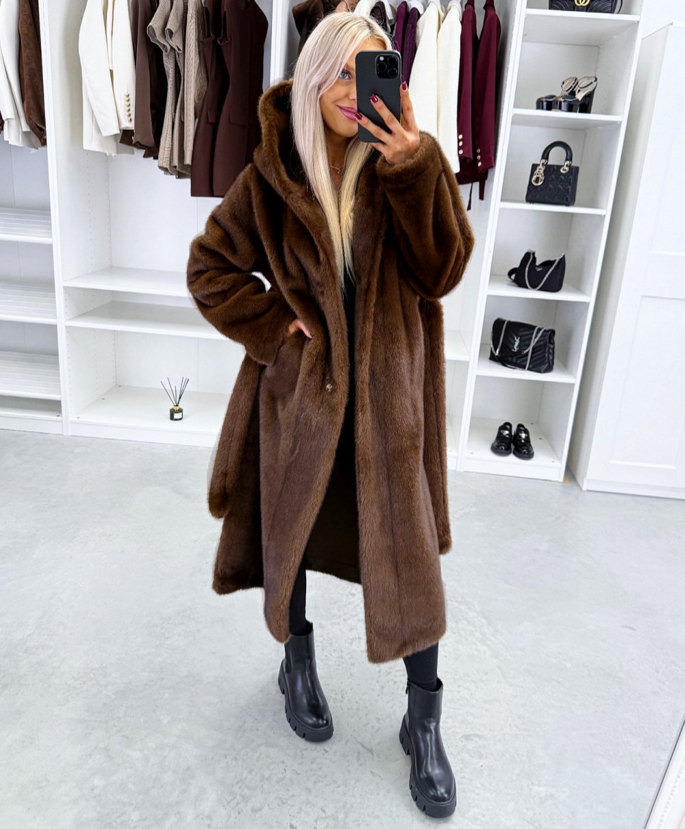 Роскошное зимнее пальто с капюшоном (Один размер, Коричневый)