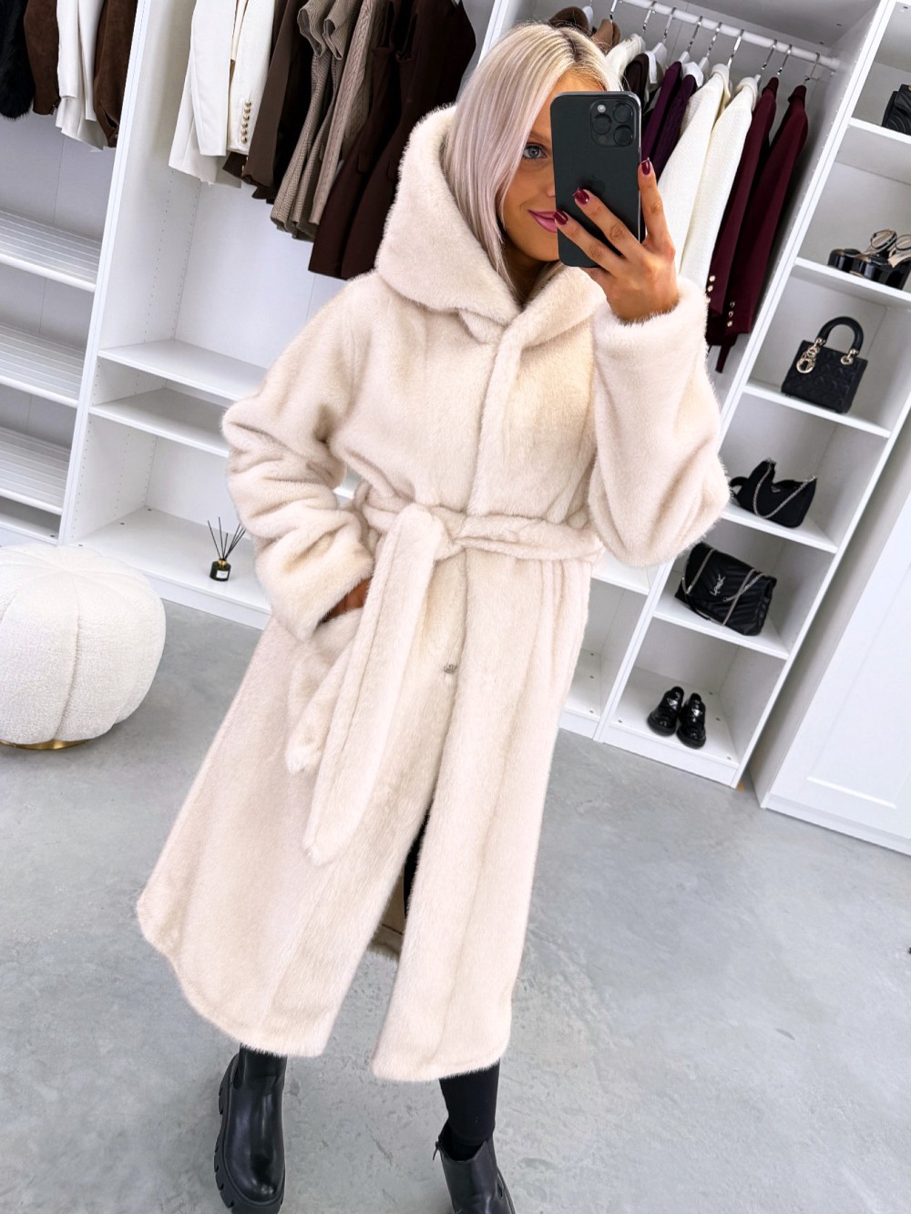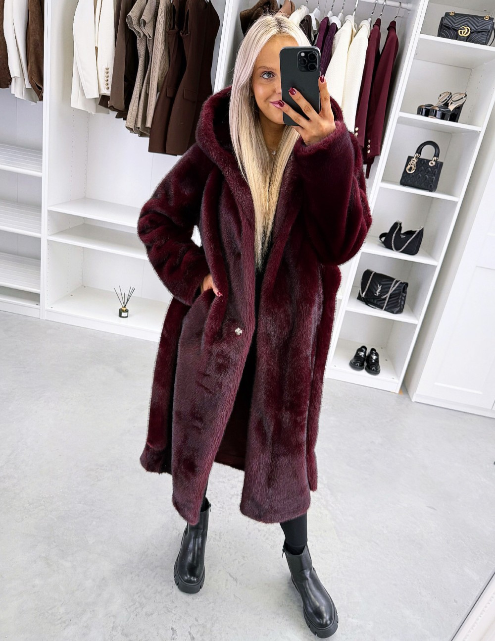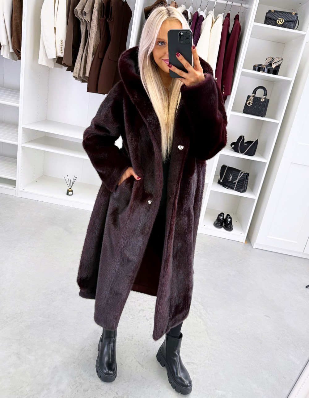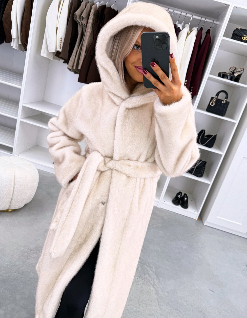 Роскошное зимнее пальто с капюшоном (Один размер, Коричневый)