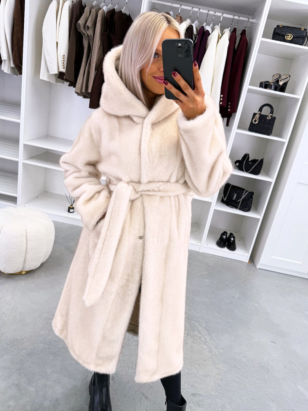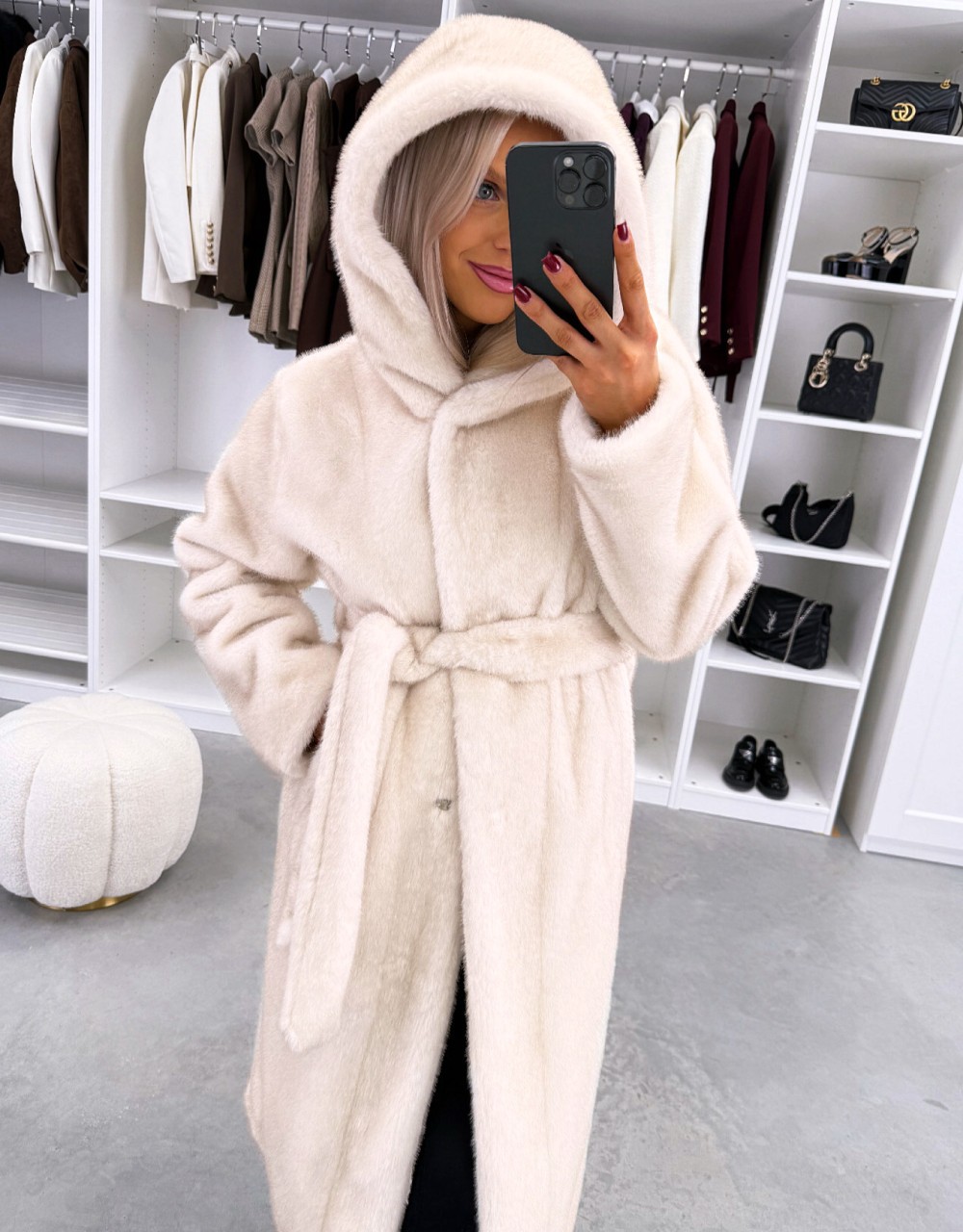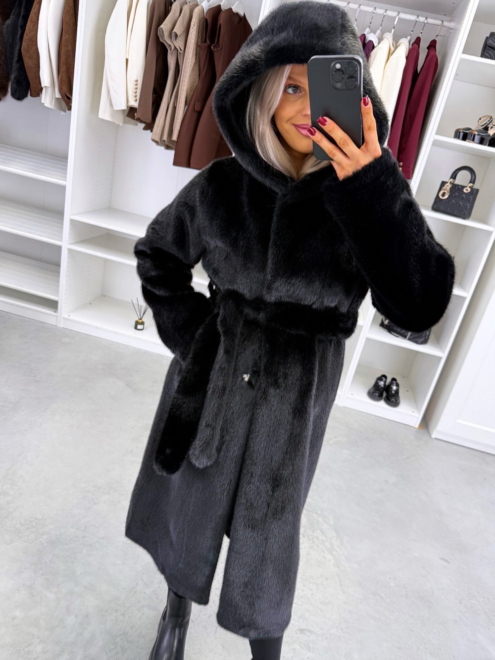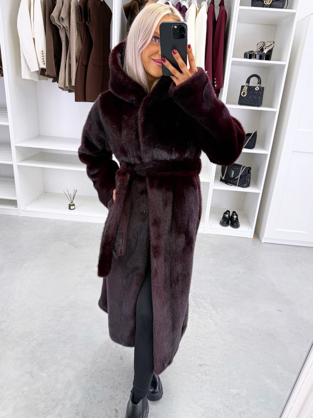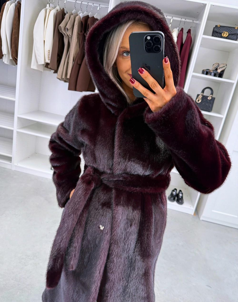 Роскошное зимнее пальто с капюшоном (Один размер, Коричневый)