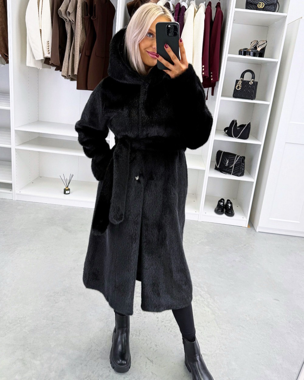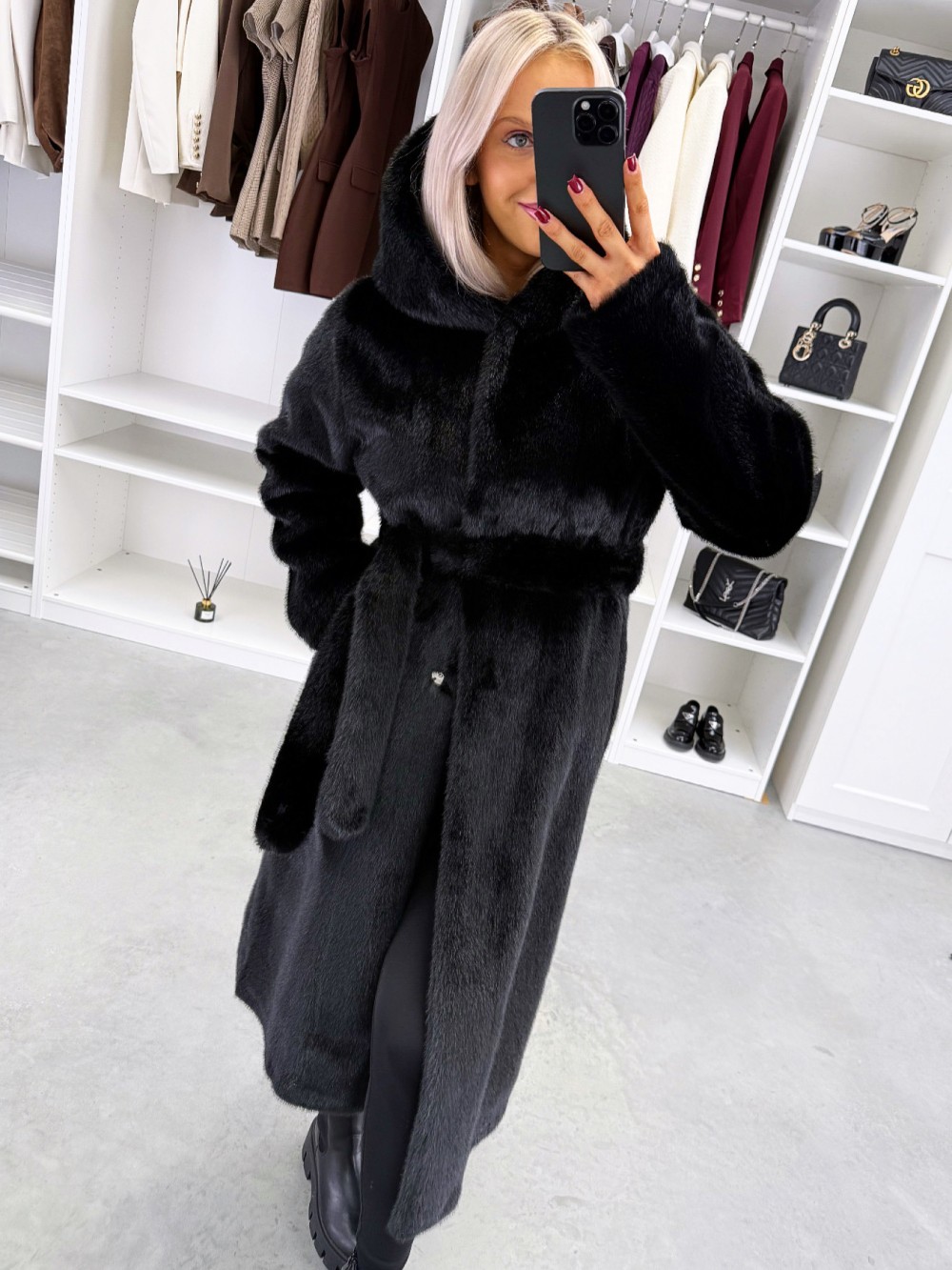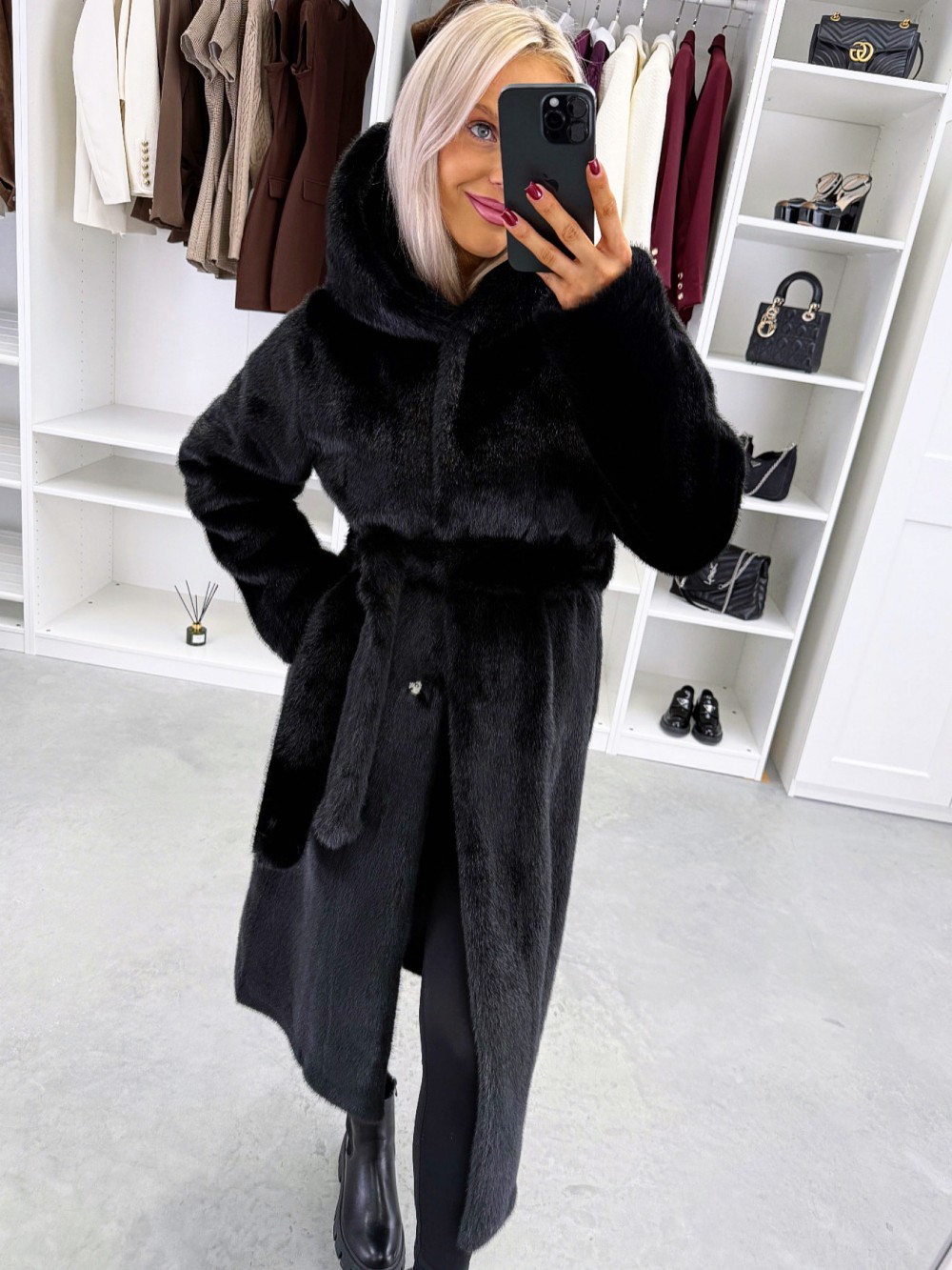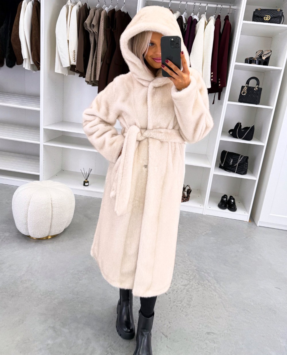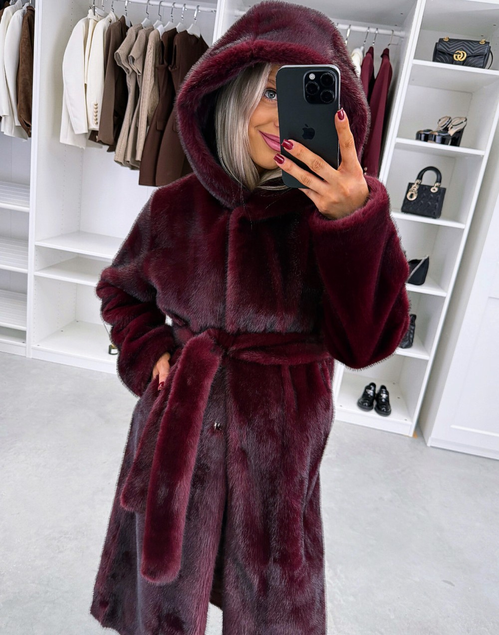 Роскошное зимнее пальто с капюшоном (Один размер, Коричневый)