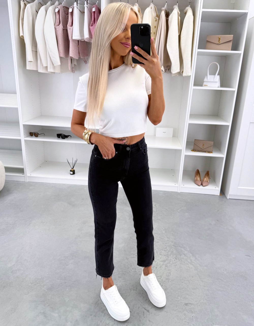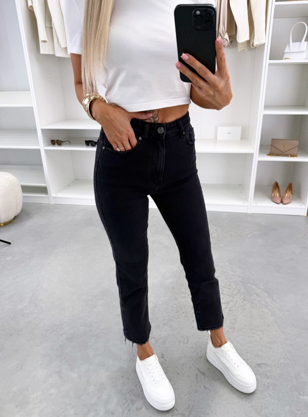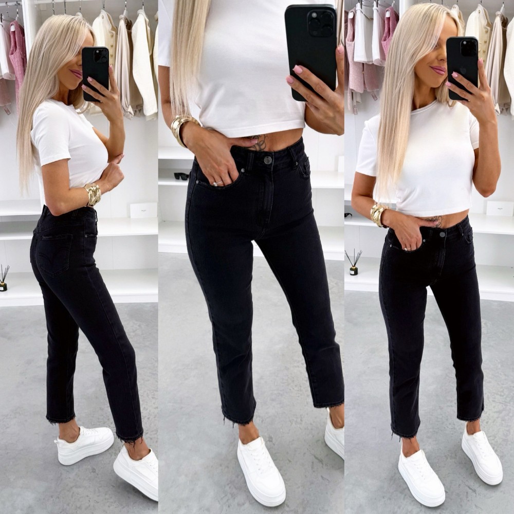 Мягкие джинсы mom fit (M, Черный)