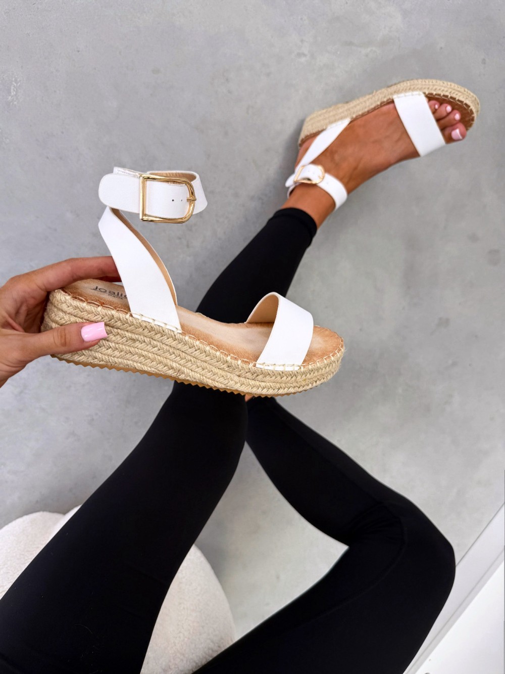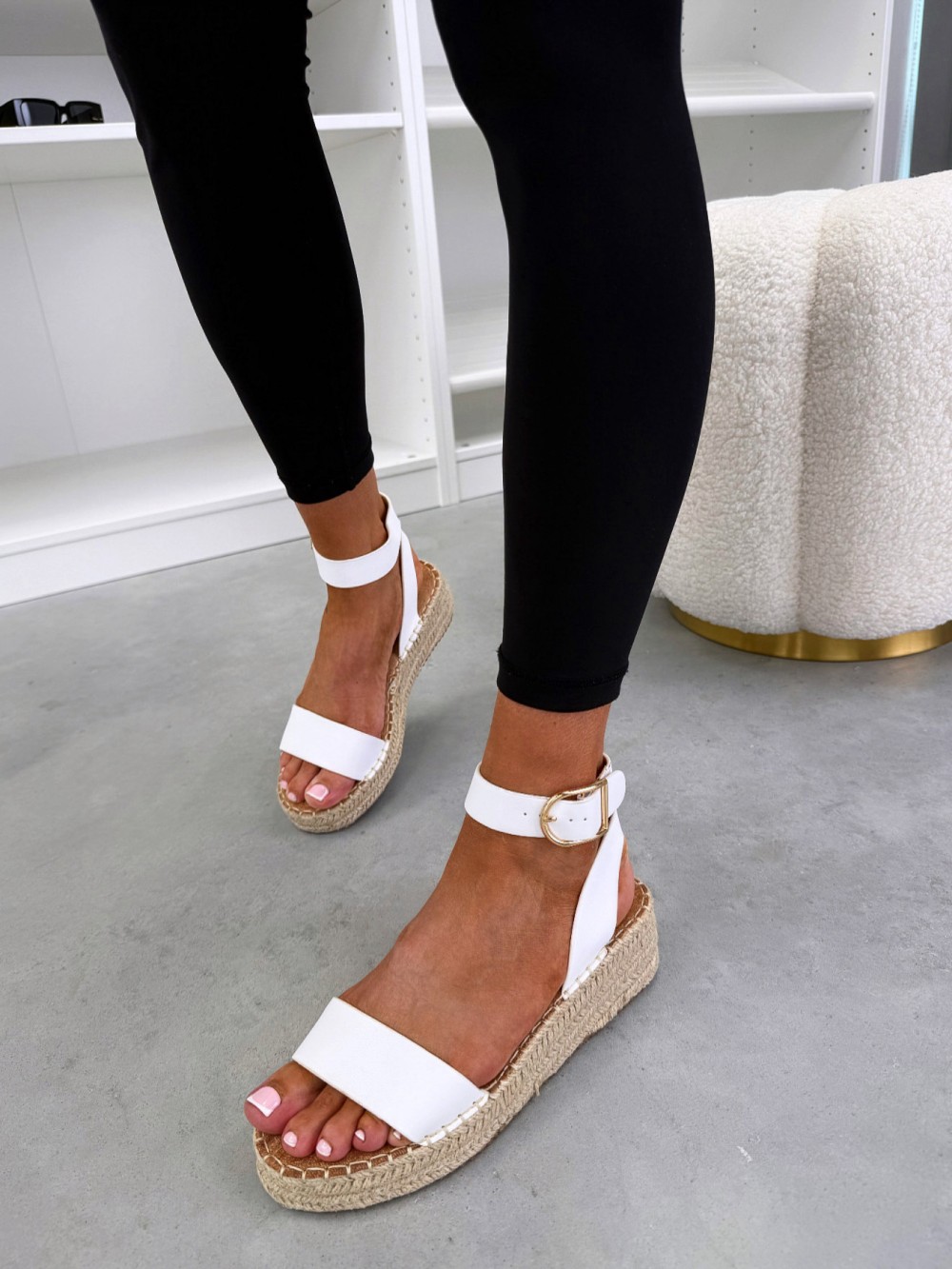 Комфортные босоножки с плетёной подошвой (Белое, 40)