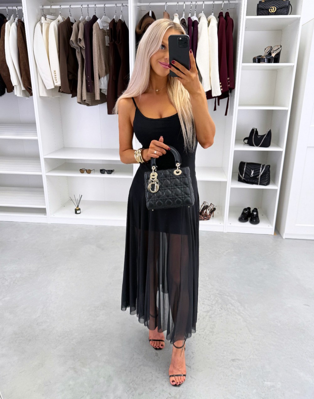 Эластичное миди-платье с подкладкой (Черный, XS/S)